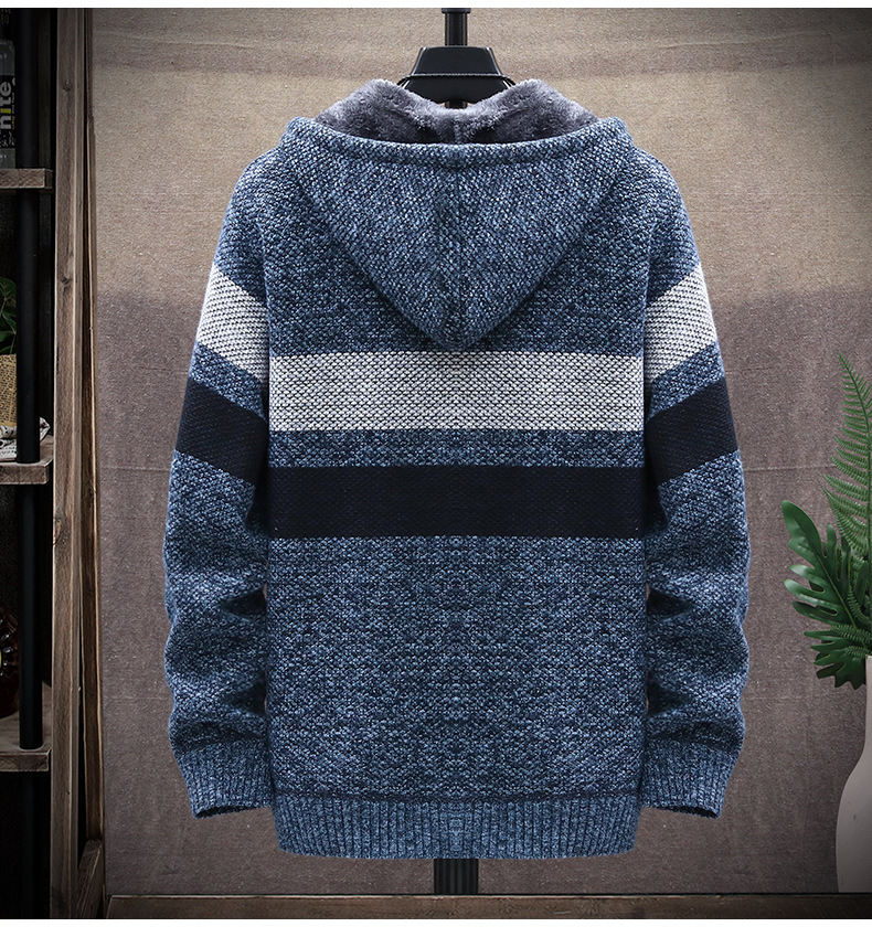 크로스 보더 스웨터 코트 남성용 가을과 겨울 트렌디 후드 가디건 기모 두꺼운 색상 차단 스웨터 대외 무역 스웨터