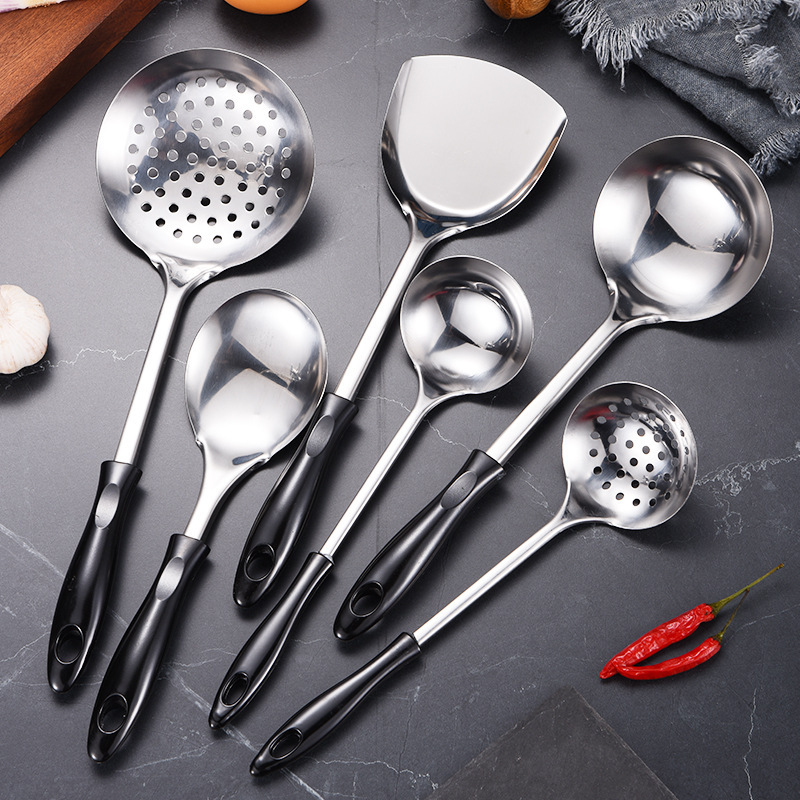 스테인레스 스틸 볶음 삽 주방 전골 수프 스푼 소쿠리 튀김 삽 세트 가정용 요리 스푼 삽 6 종 주방 용품스토어 가기