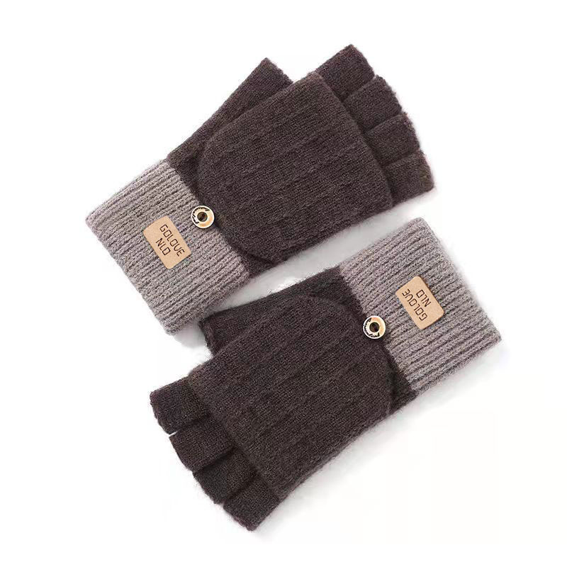 크로스 보더 하프 핑거 플립 커버 한국식 장갑 겨울 여자의 귀여운 기모 방한 따뜻한 양모 니트 가을과 겨울 예상 손가락스토어 가기