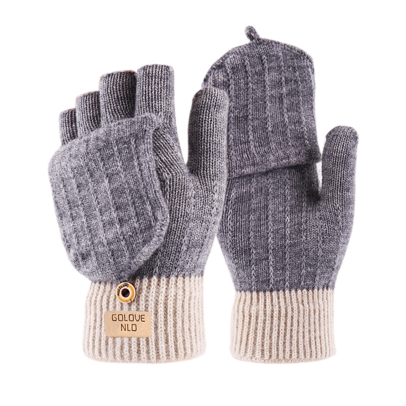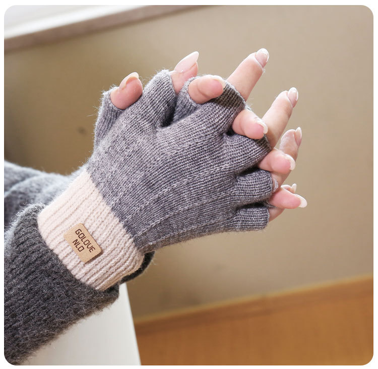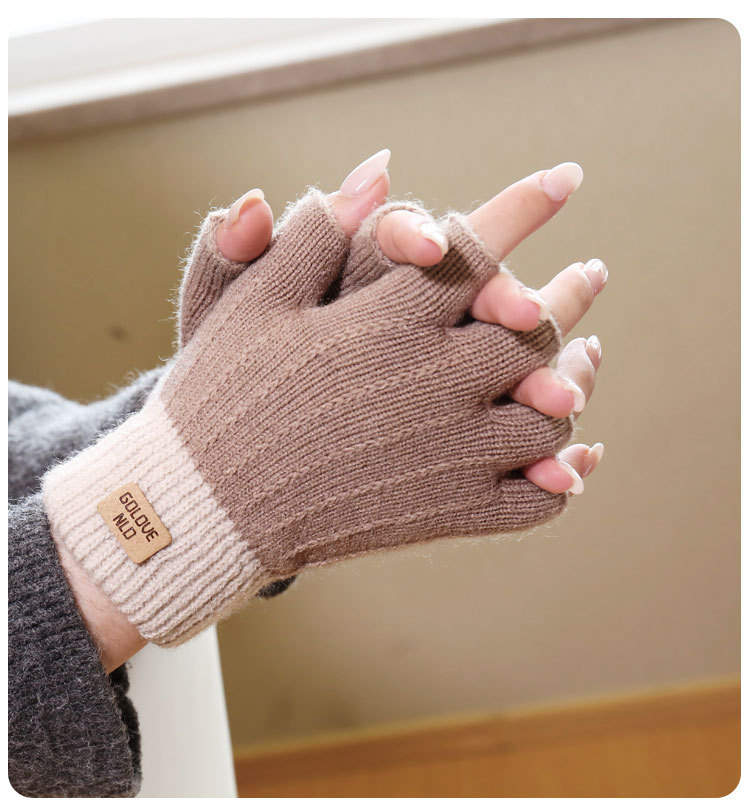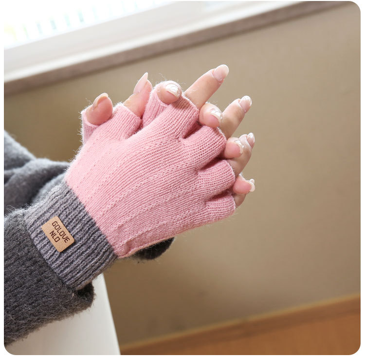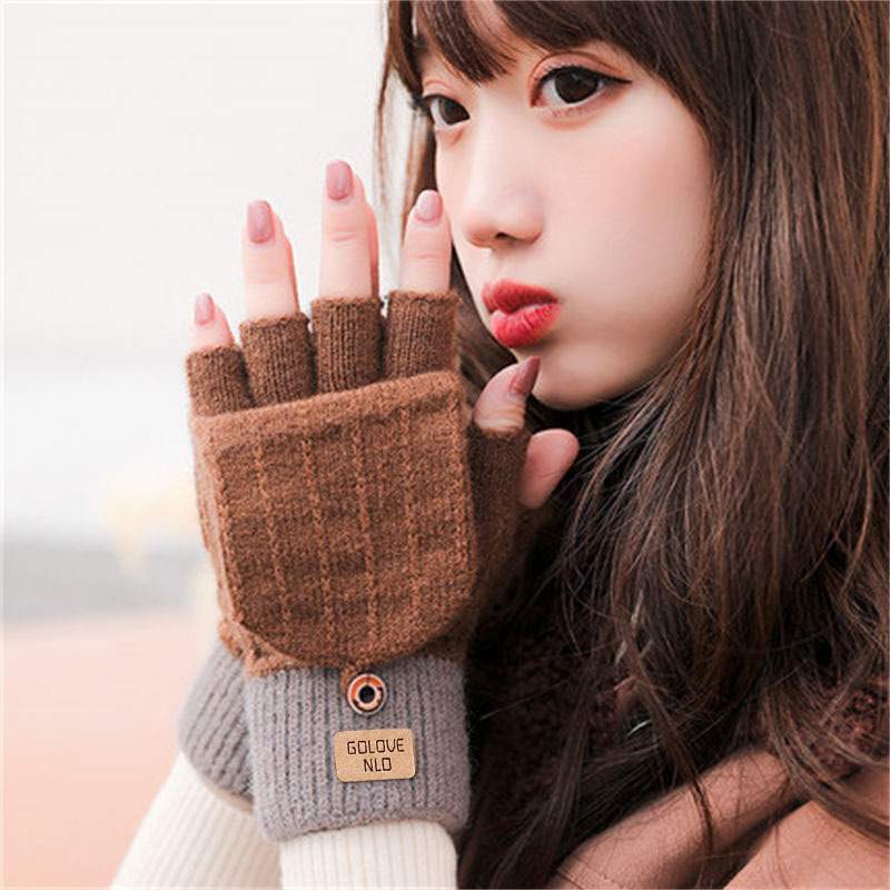 크로스 보더 하프 핑거 플립 커버 한국식 장갑 겨울 여자의 귀여운 기모 방한 따뜻한 양모 니트 가을과 겨울 예상 손가락