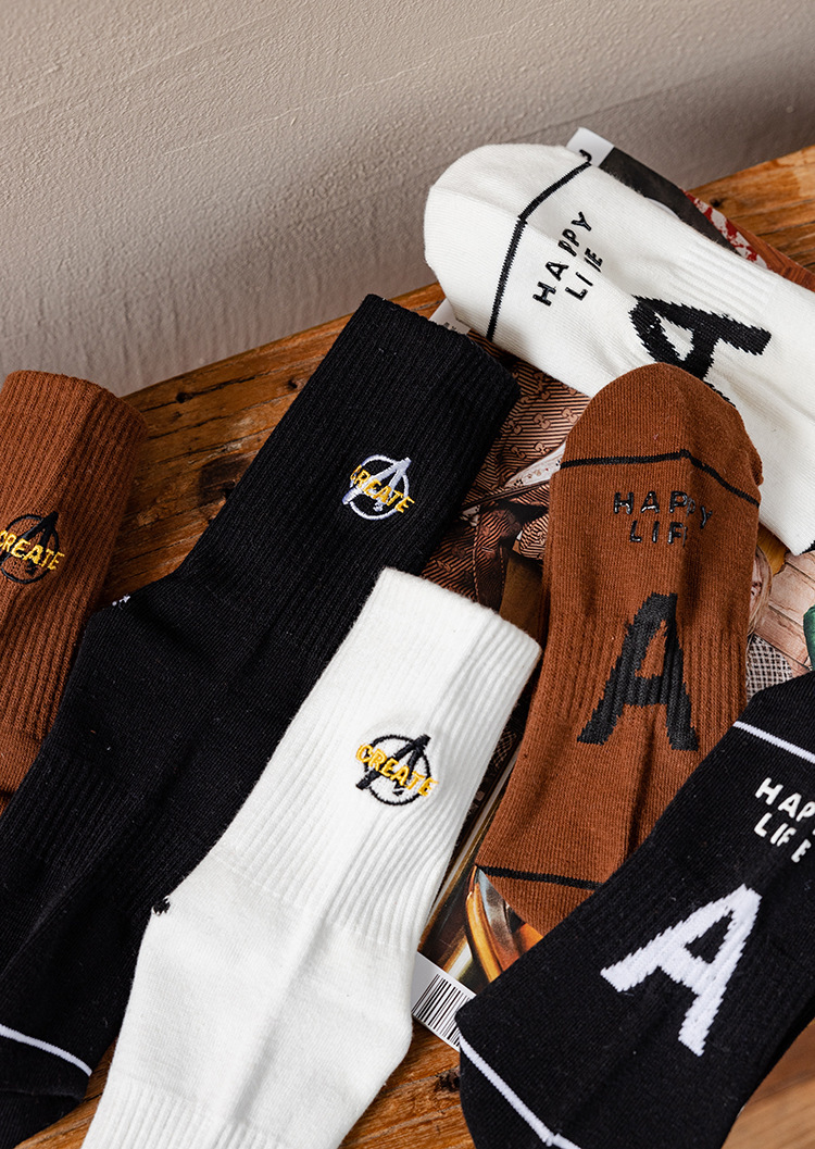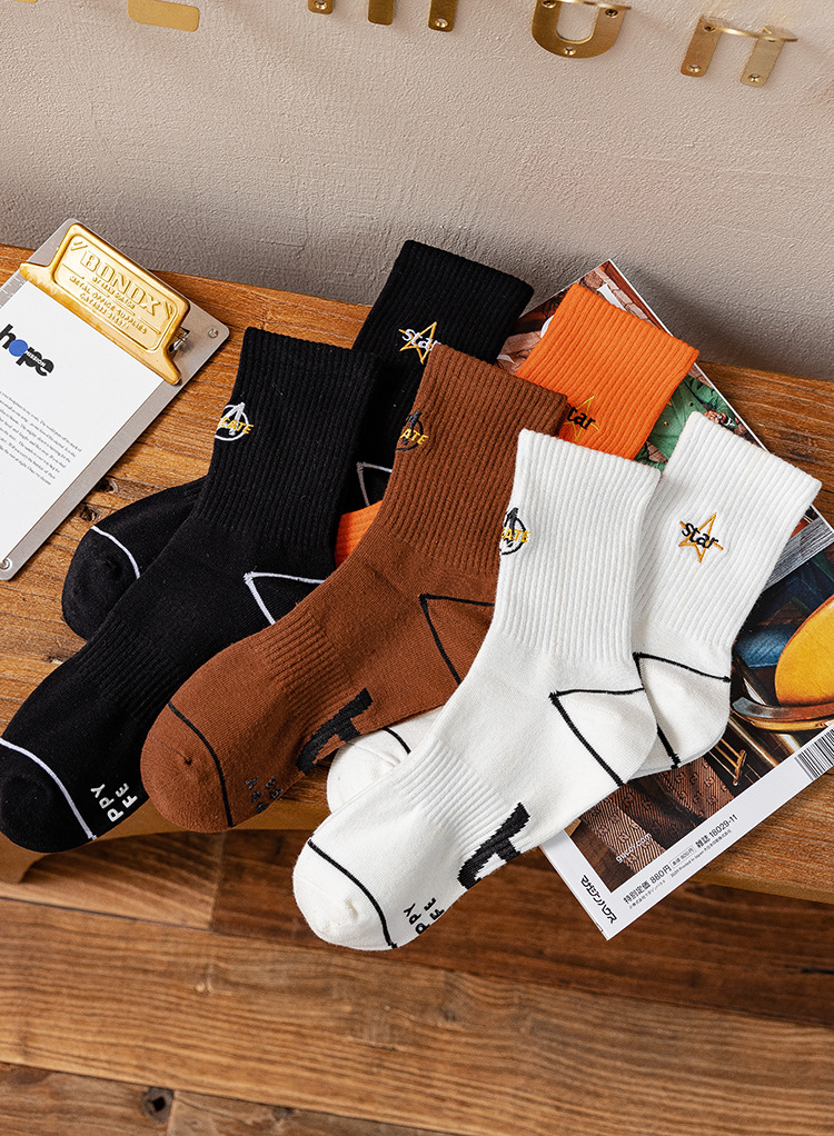 양말 남성 가을과 겨울 패션에 새로운 문자 자수 스포츠 미끄럼 방지 고무 바닥 통기성 땀 흡수성 면 양말