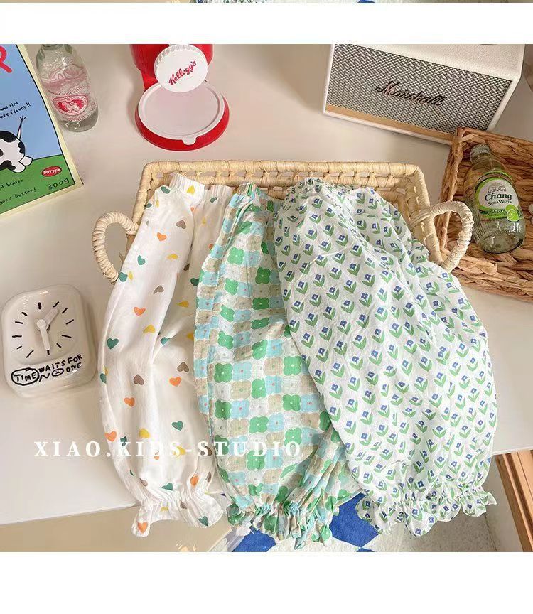여아 홀리데이 자외선 차단제 바지 어린이 레트로 플로럴 여름 모든 매치 모기 방지 바지 여름 프린트 미드 웨이스트 비치 팬츠