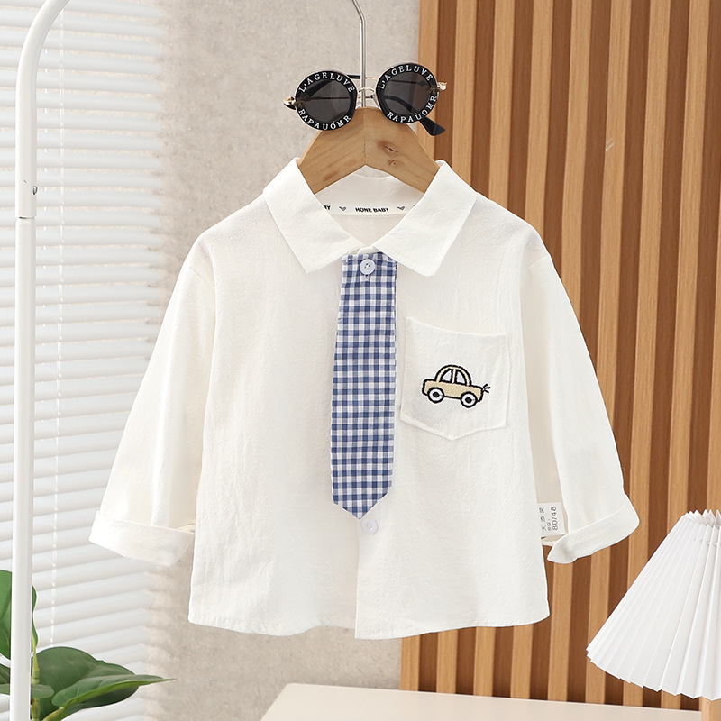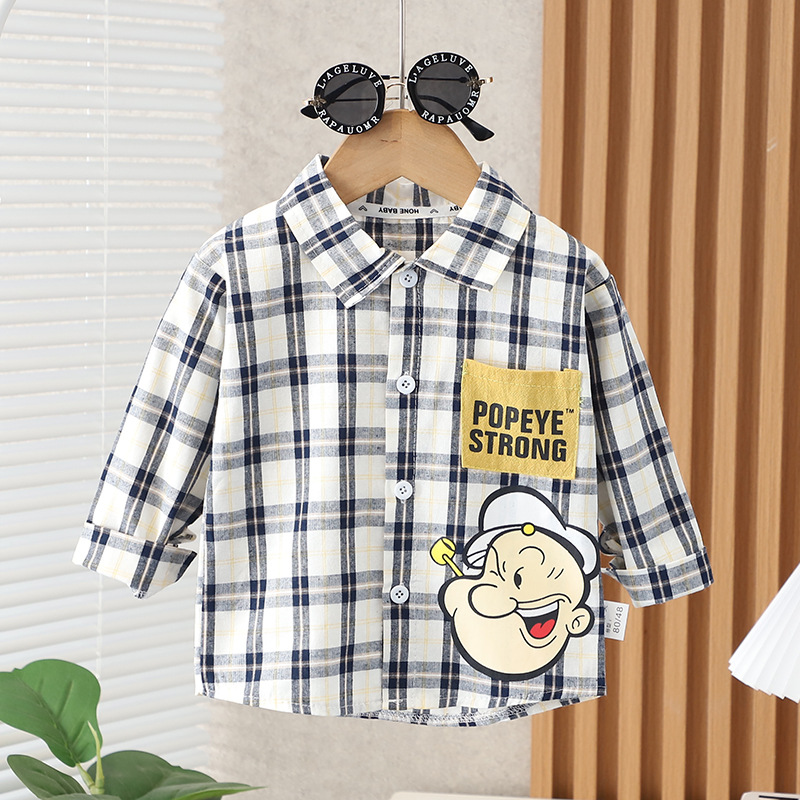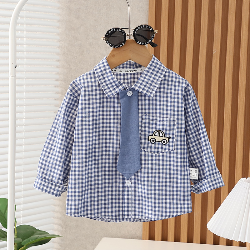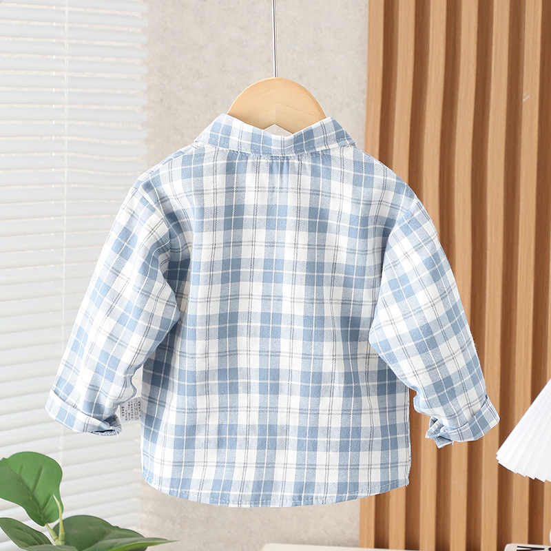 소년과 소녀를위한 어린이 격자 무늬 셔츠 2025 봄, 가을 한국 스타일 아기 긴팔 탑 아기 어린이 유행 셔츠스토어 가기