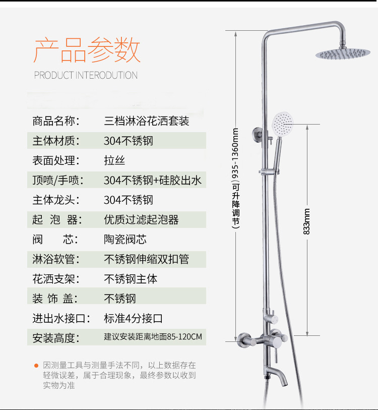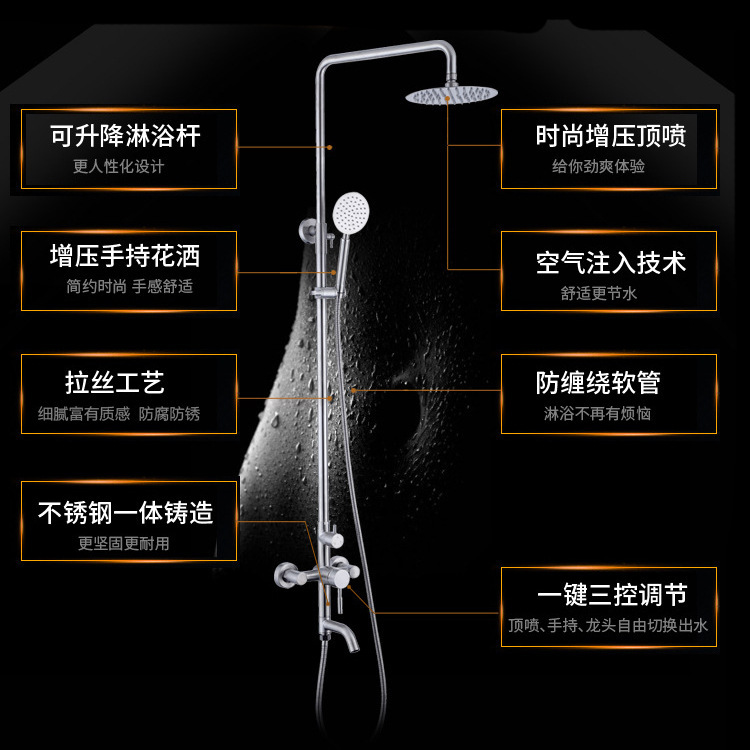 304 스테인레스 스틸 욕실 샤워 세트 수도꼭지 간단한 샤워 풀 세트 도매 대형 샤워 탑 스프레이 세트스토어 가기