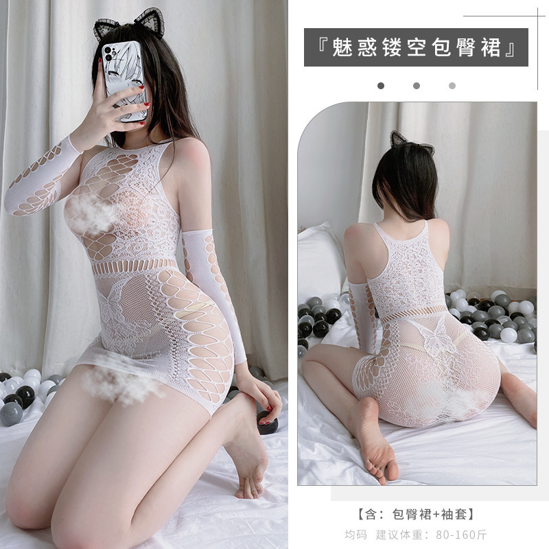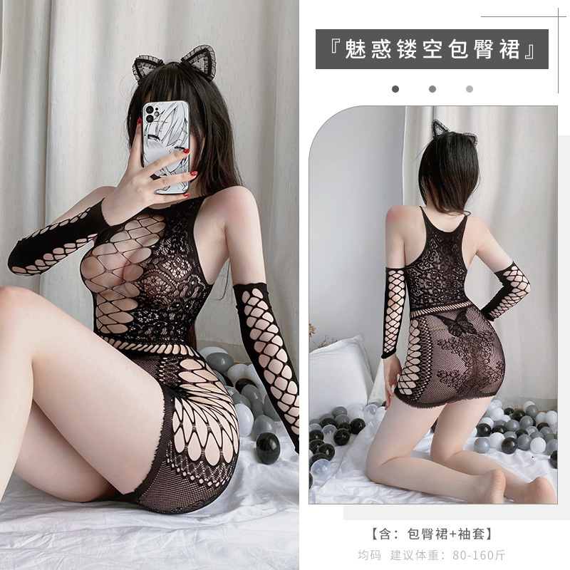 아마존 섹시한 민소매 속이 빈 투시 분할 세트 유혹하는 검은 실크 나비 무료 유니폼 유혹 엉덩이 치마스토어 가기