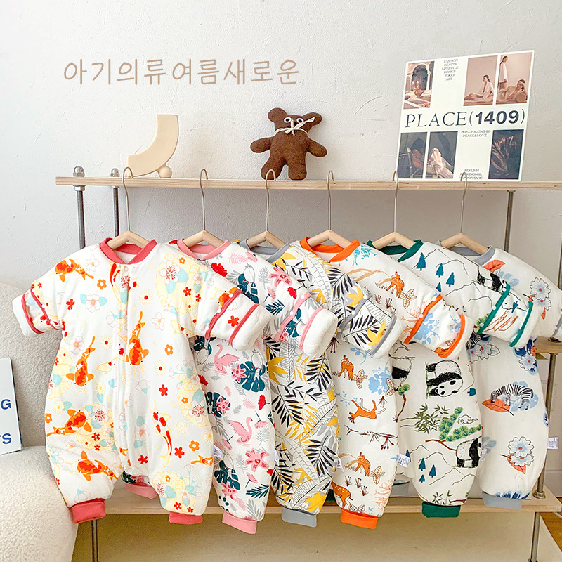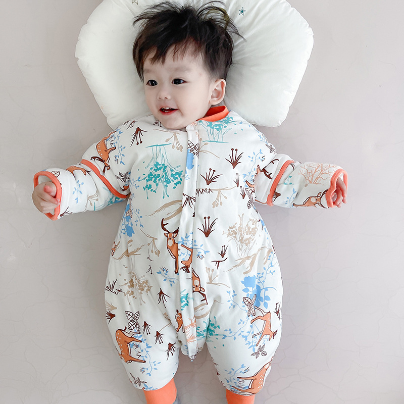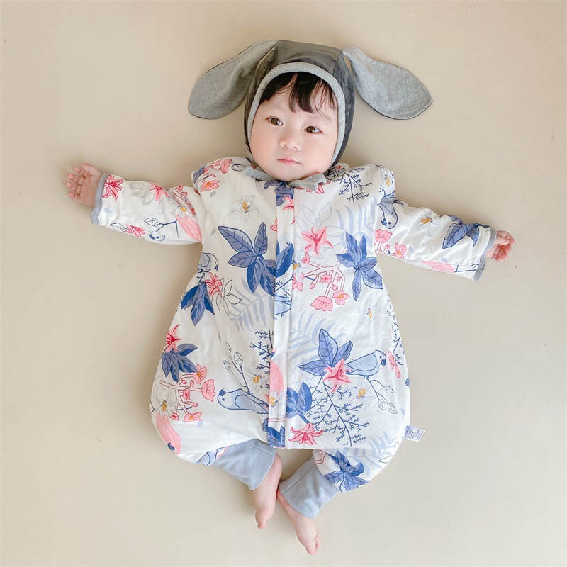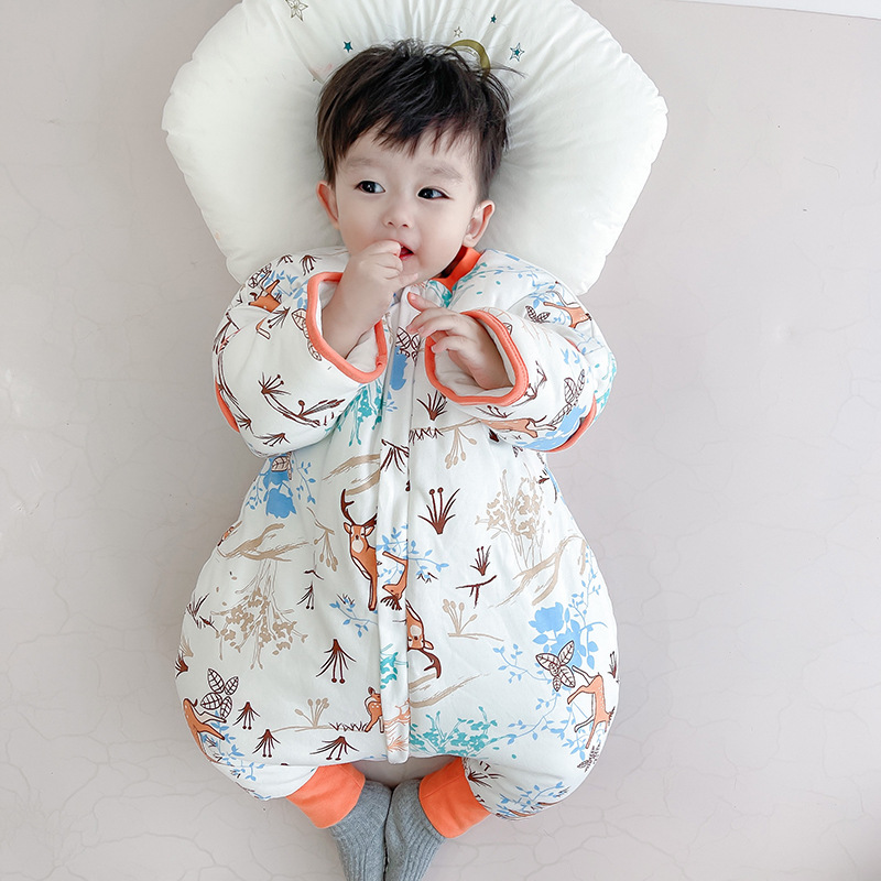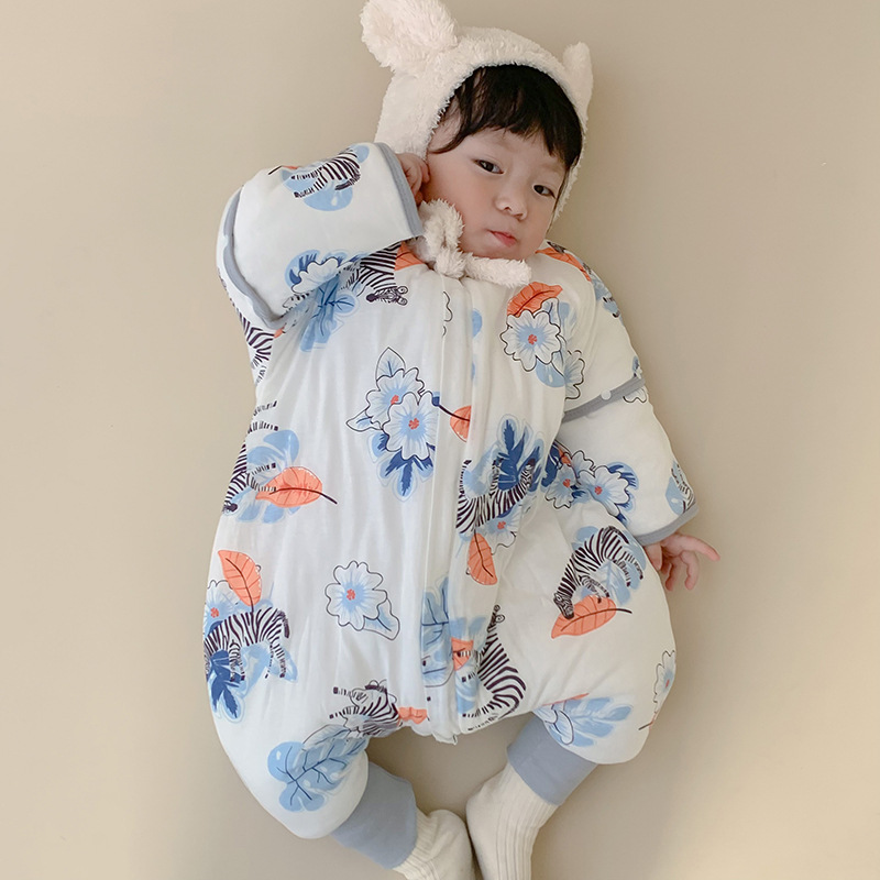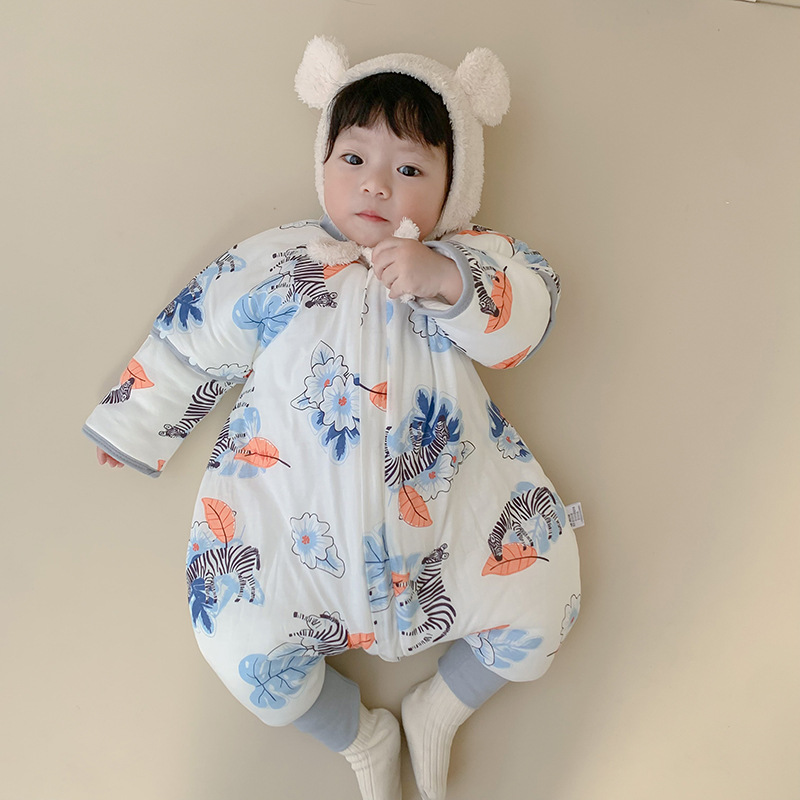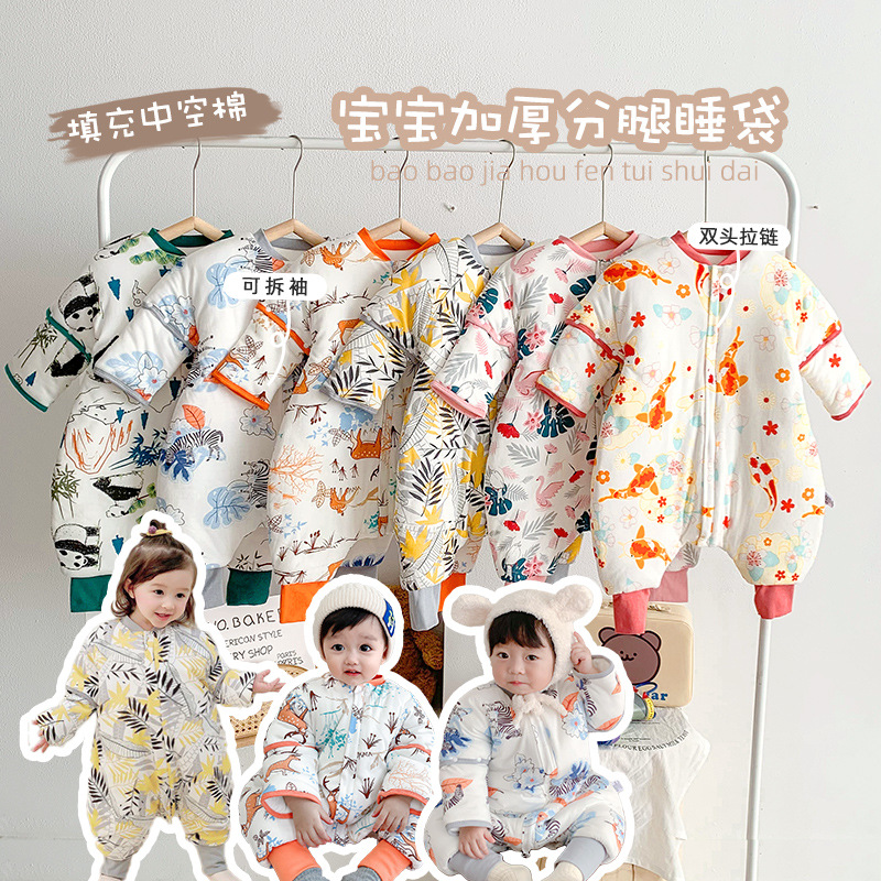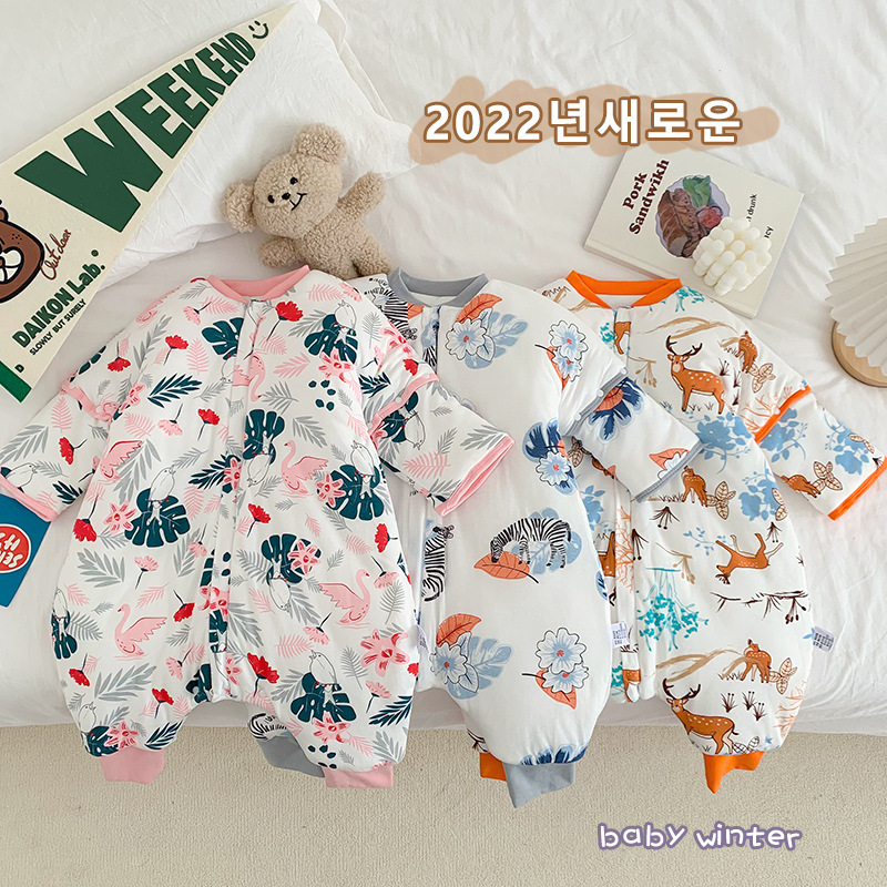 22 재고 아기 침낭 두꺼운 다리 잠옷 아기 신생아 지퍼 다기능 킥 방지 겨울 국립 조류스토어 가기