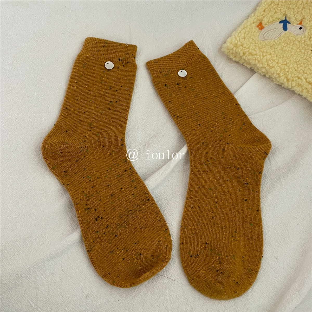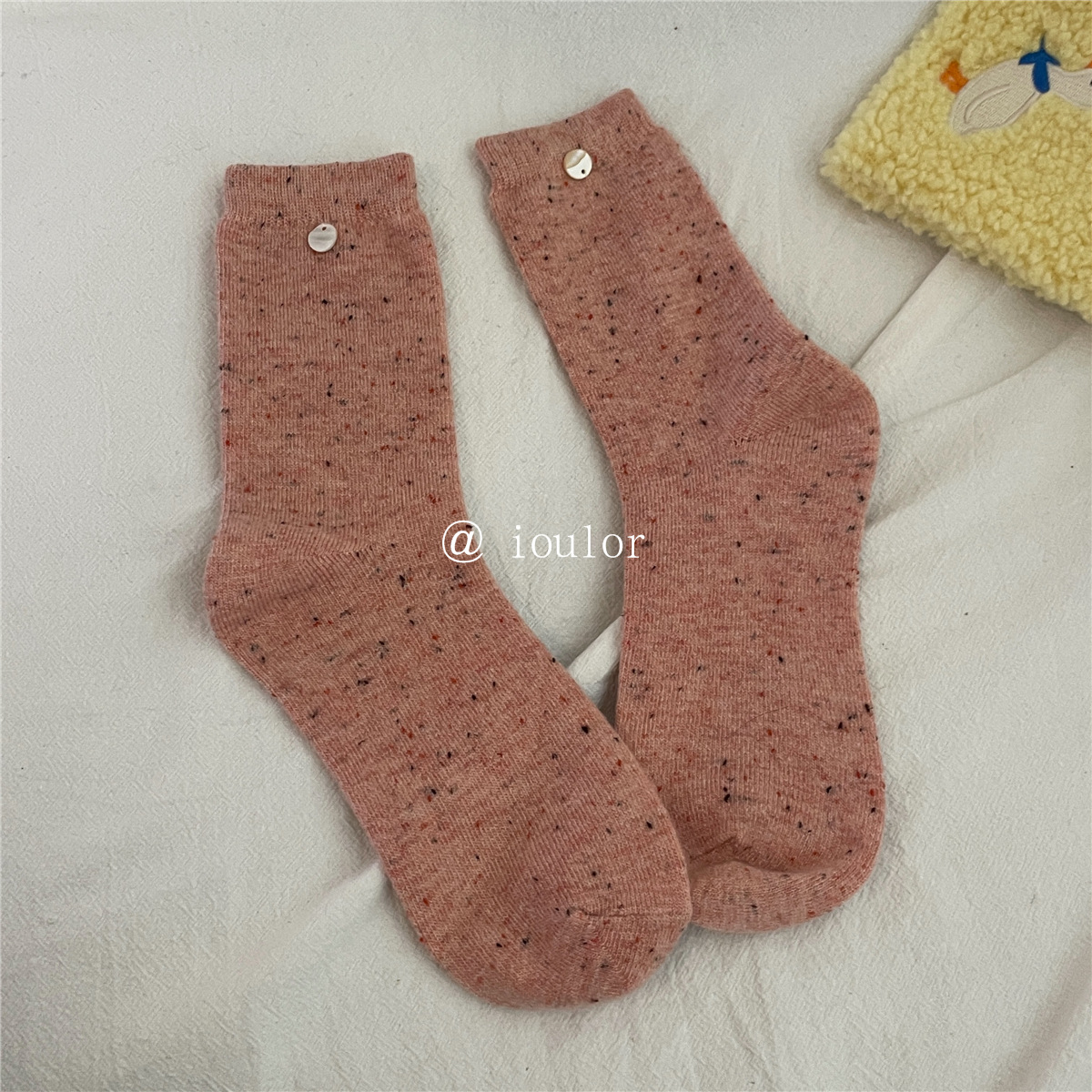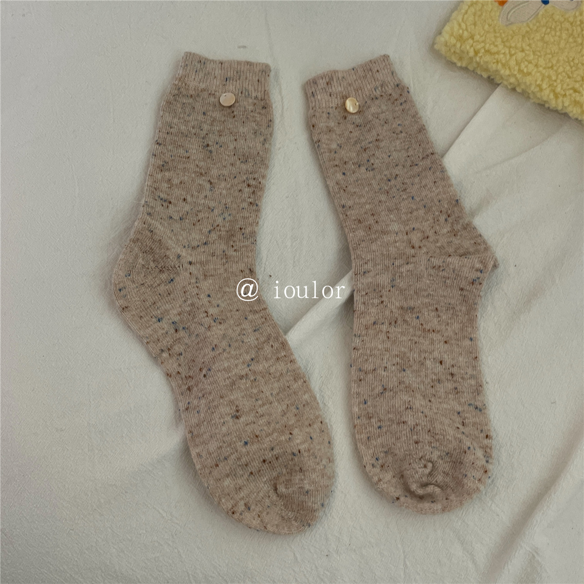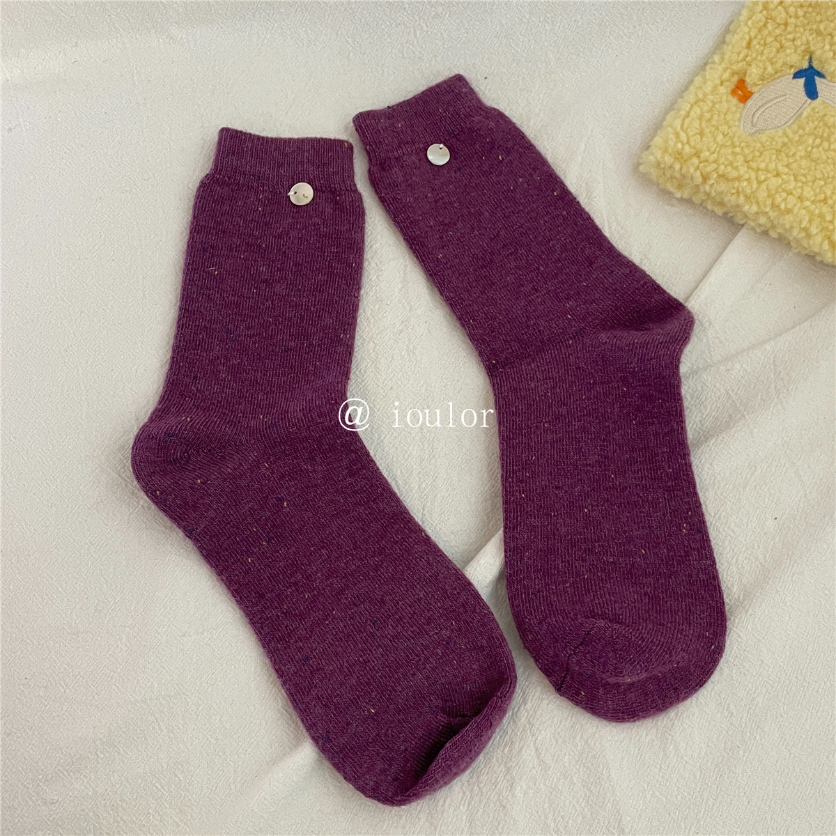 IOULOR 컬러 포인트 양모 양말 복고풍 버튼 쌓인 양말 가을과 겨울 따뜻한 일본식 중간 길이 양말 Zhuji 양말 여성