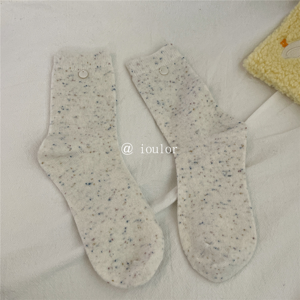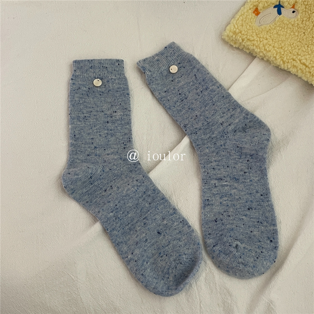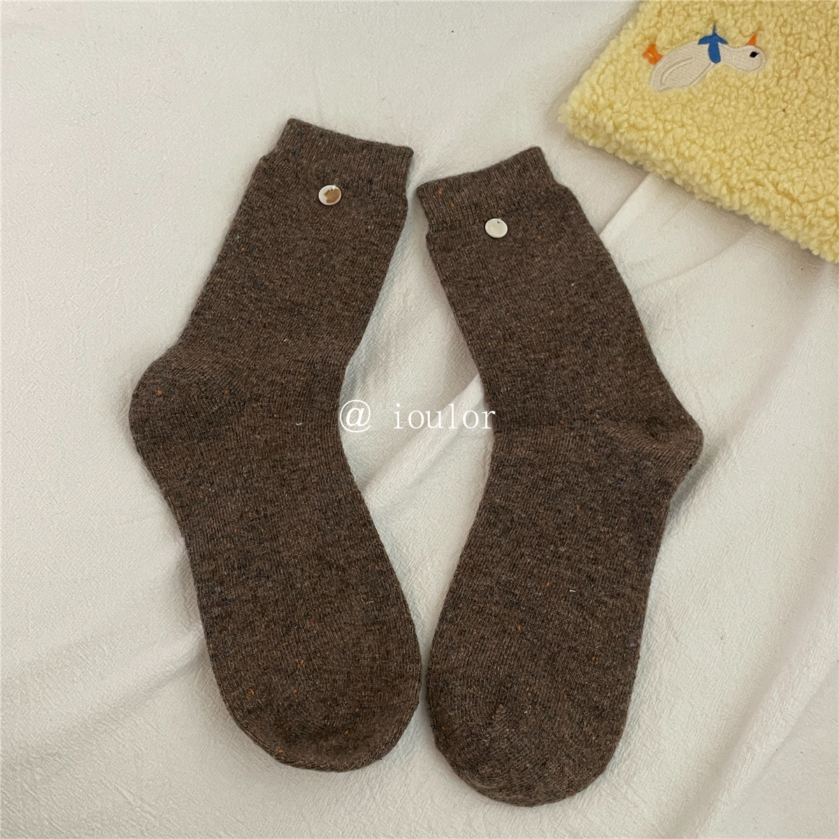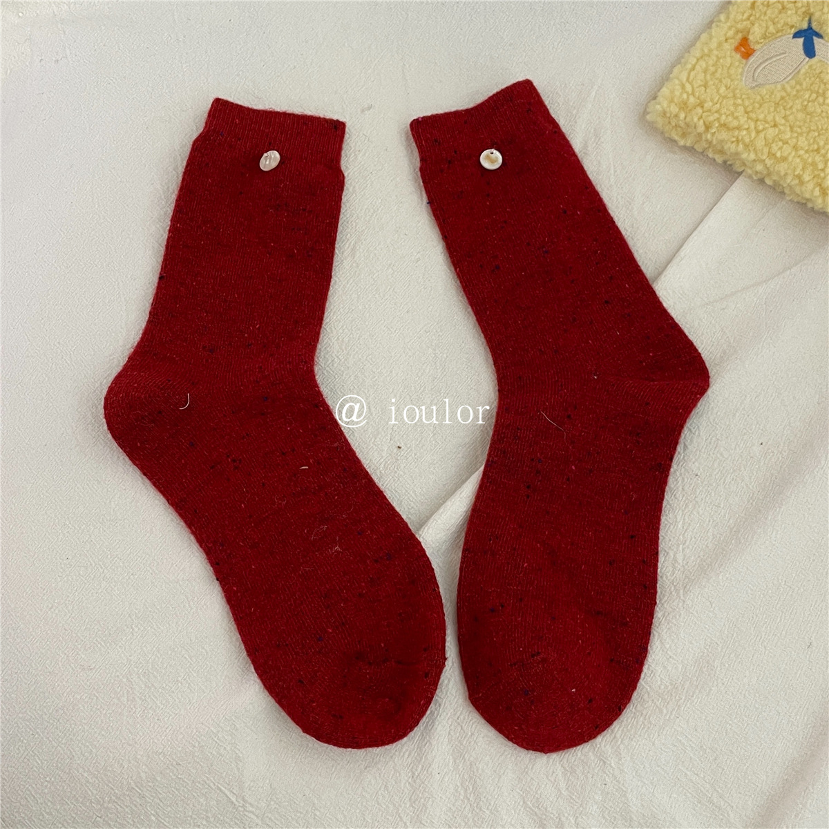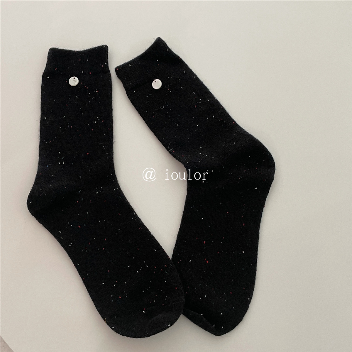 IOULOR 컬러 포인트 양모 양말 복고풍 버튼 쌓인 양말 가을과 겨울 따뜻한 일본식 중간 길이 양말 Zhuji 양말 여성