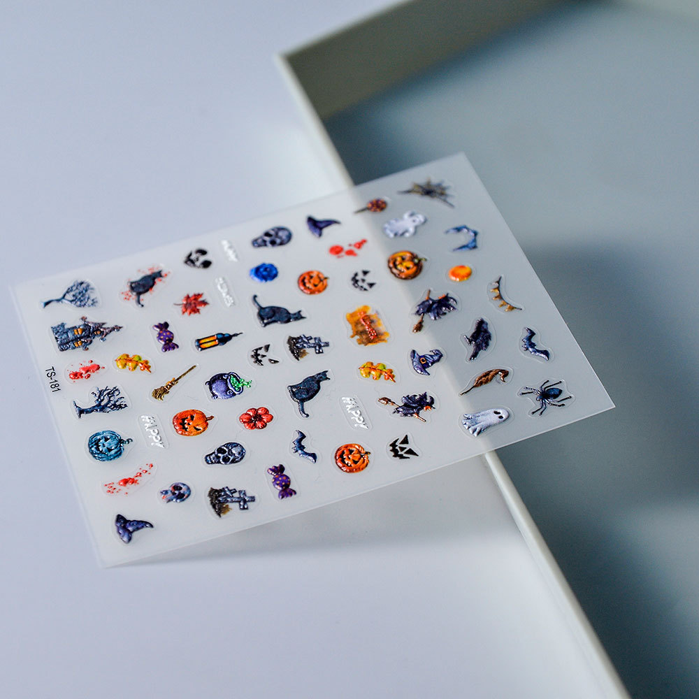 다크 스타일 할로윈 5D 네일 아트 스티커 달콤한 멋진 해골 양각 네일 스티커 악마 테마 네일 장식 스티커스토어 가기