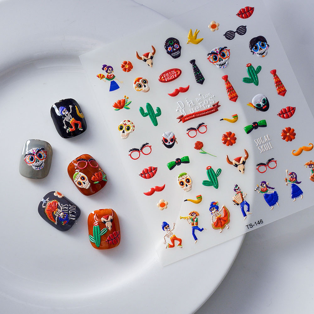 다크 스타일 할로윈 5D 네일 아트 스티커 달콤한 멋진 해골 양각 네일 스티커 악마 테마 네일 장식 스티커