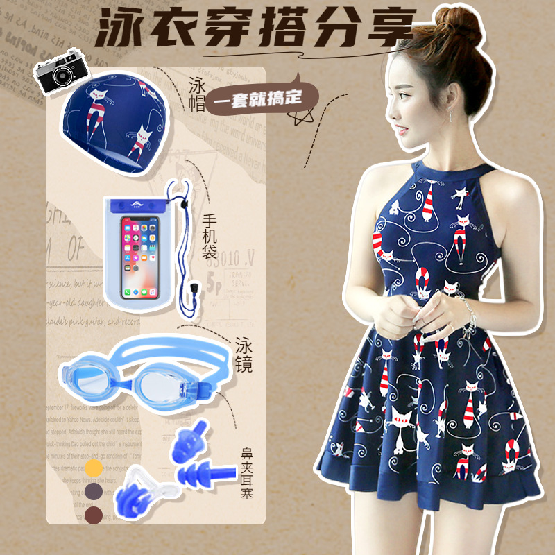 수영복 여자의 유행 새로운 등이없는 치마 배꼽 덮는 슬리밍 목 개더링 한국 플러스 사이즈 보수적 인 온천 수영복스토어 가기