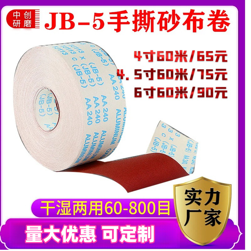 JB-5 손으로 찢는 모래 천 롤 부드러운 천 롤 사포 목공 가구 금속 연마 모래 종이 반점 제조 업체스토어 가기