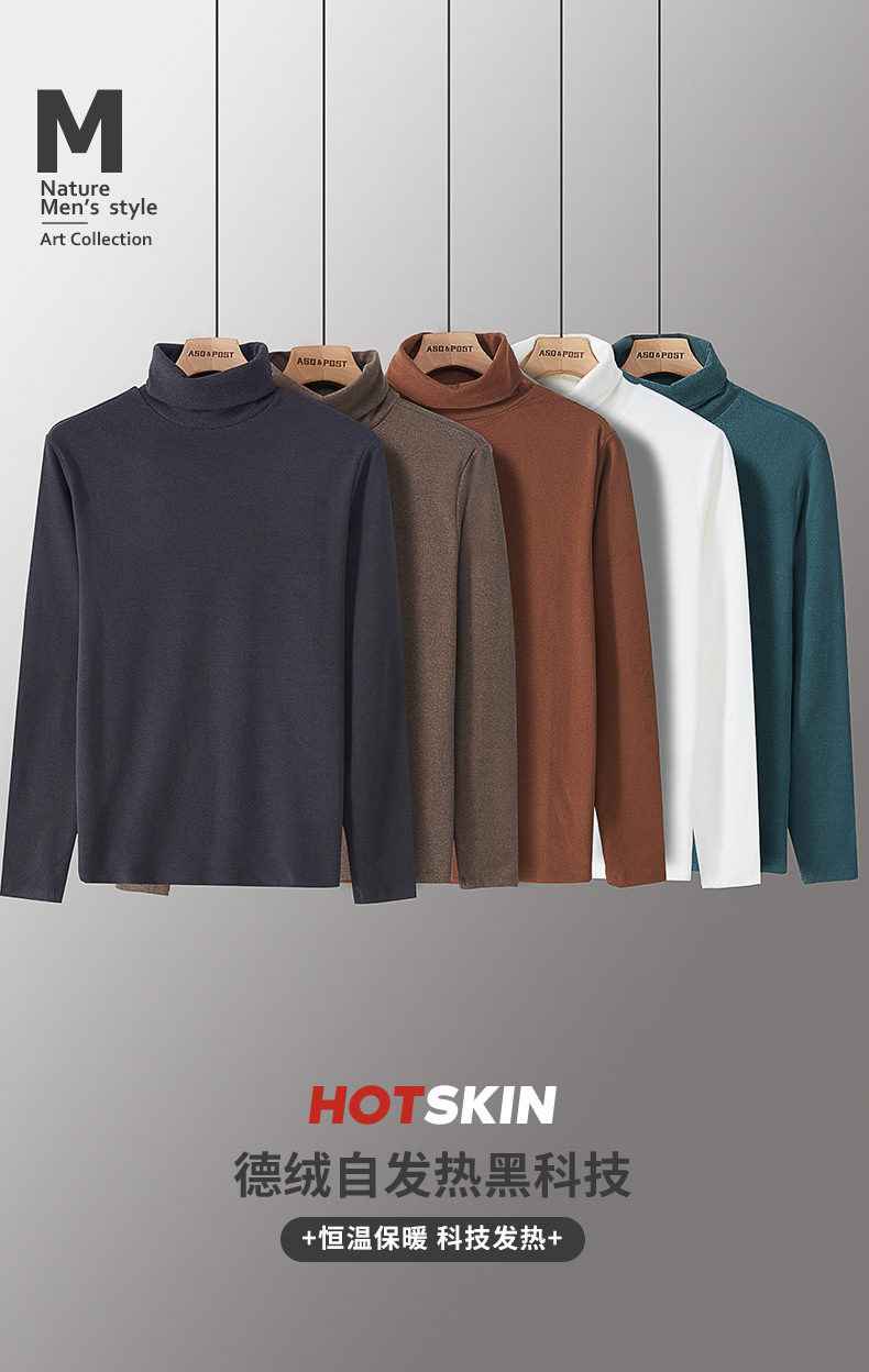 하이넥 가을 겨울 남성용 기모 안감 긴팔 티셔츠 이너웨어 남성용 두꺼운 보온 셔츠스토어 가기