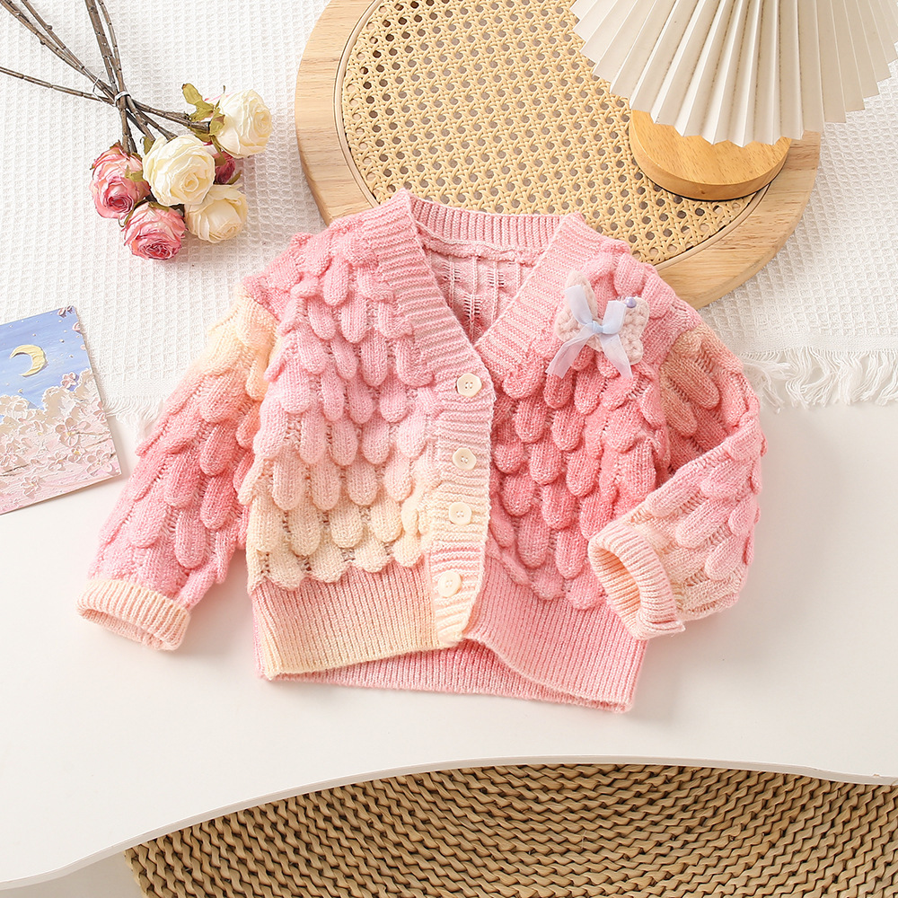 소녀 봄 그라디언트 카디건 니트 스웨터 2022 새로운 한국 스타일 어린이 무지개 서양식 스웨터 코트 트렌디스토어 가기