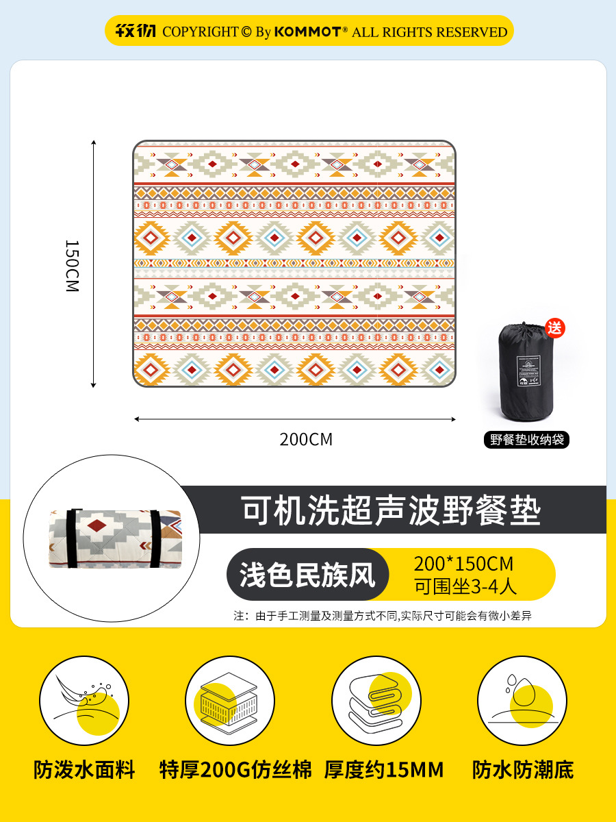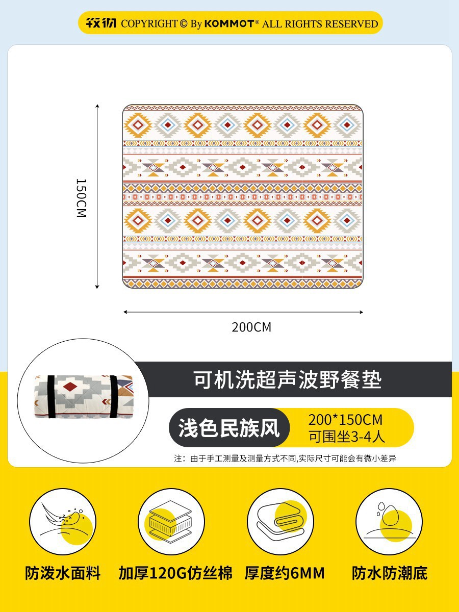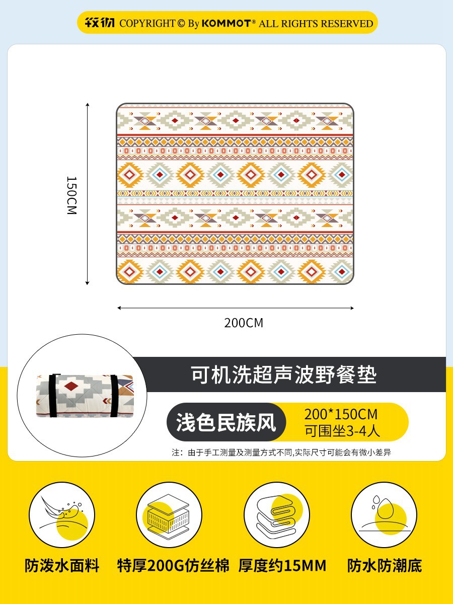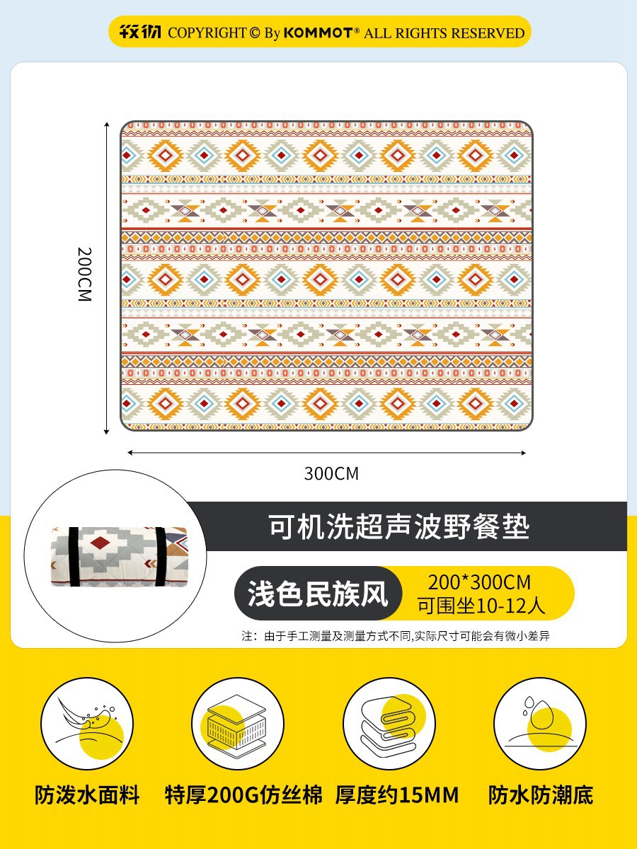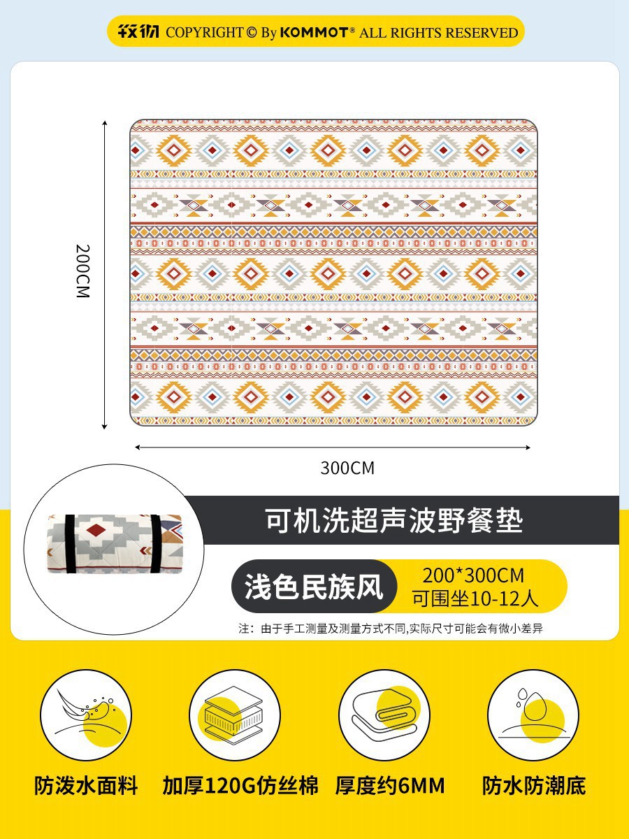 KOMMOT Muche 두꺼운 피크닉 매트 습기 방지 매트 야외 캠핑 매트 잔디 방수 휴대용 피크닉 천 쿠션