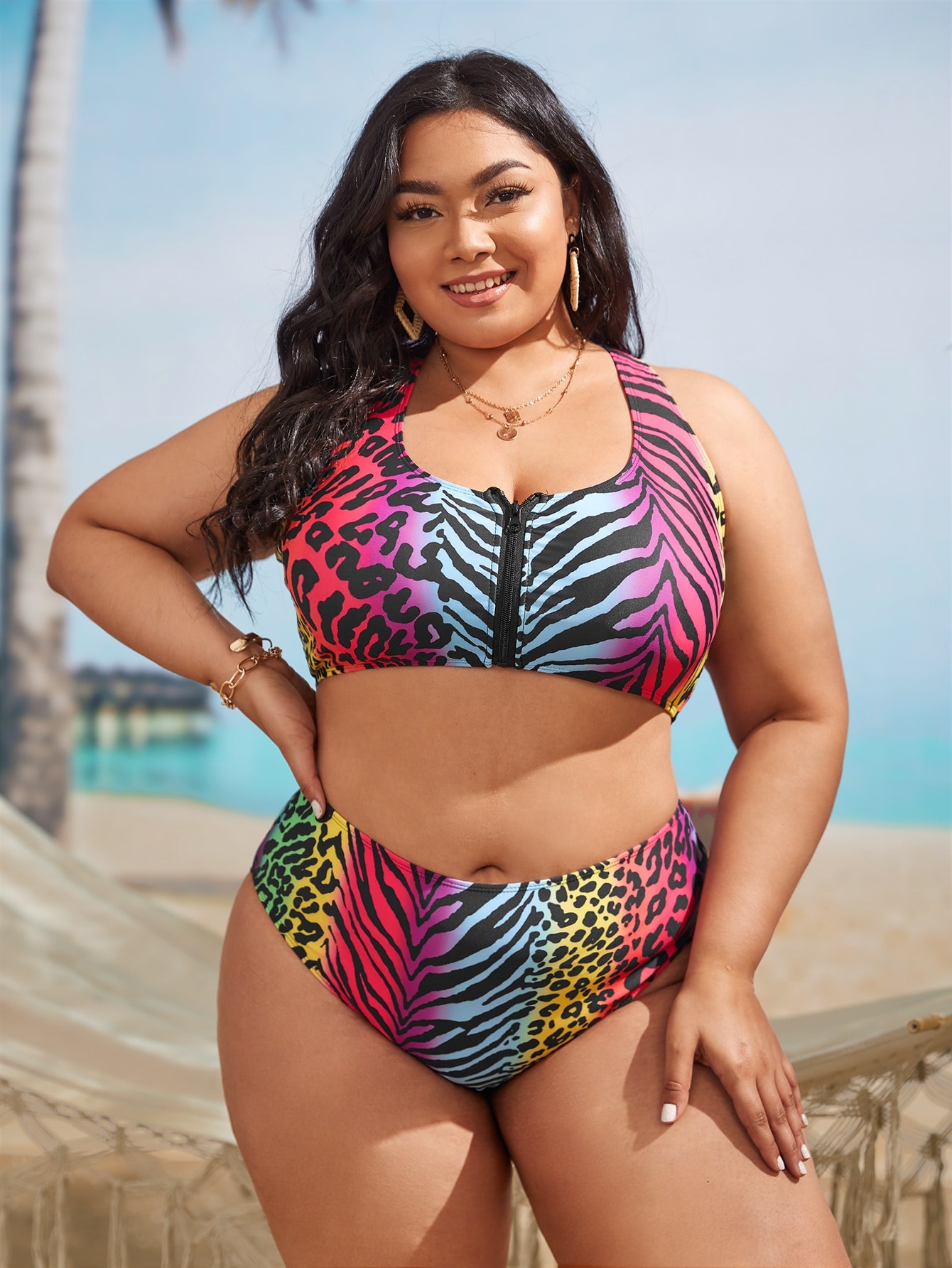 2023 새로운 유럽과 미국 대외 무역 수영복 여자 스플릿 레오파드 무늬 아마존 AliExpress 플러스 사이즈 비키니 수영복