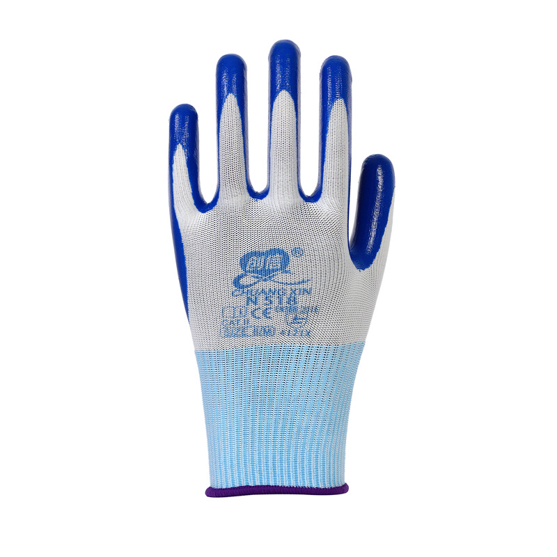 Chuangxin N518 니트릴 순수 고무 미끄럼 방지 내마모성 통기성 장갑 건설 현장 노동 보호 나일론 담그는 장갑