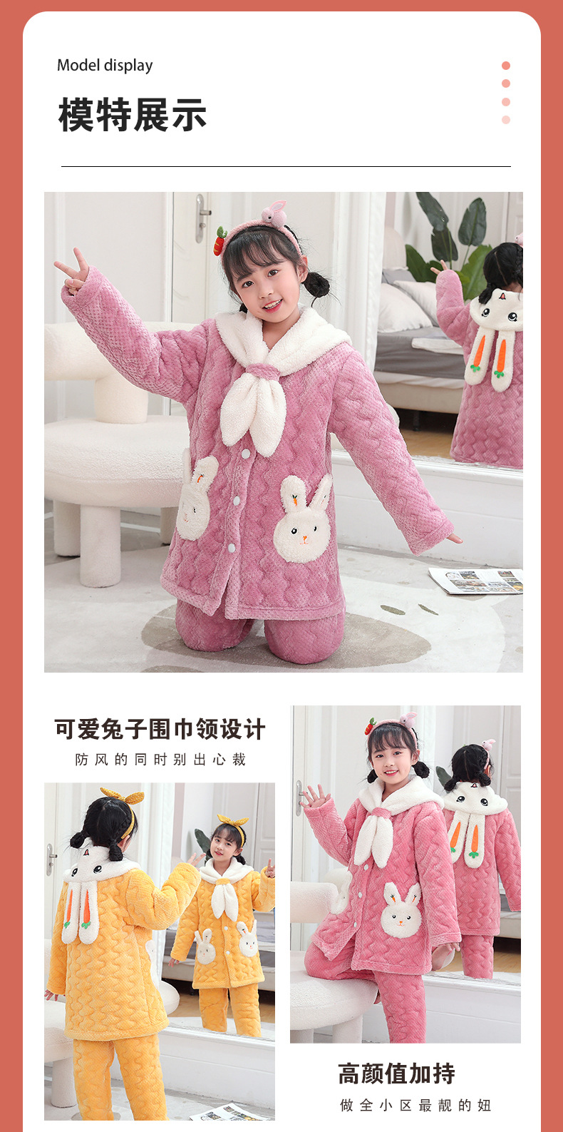 가을과 겨울 어린이 3 층 두꺼운 누비 이불 잠옷 귀여운 만화 세트 여아 플란넬 스카프 칼라 가정 의류스토어 가기