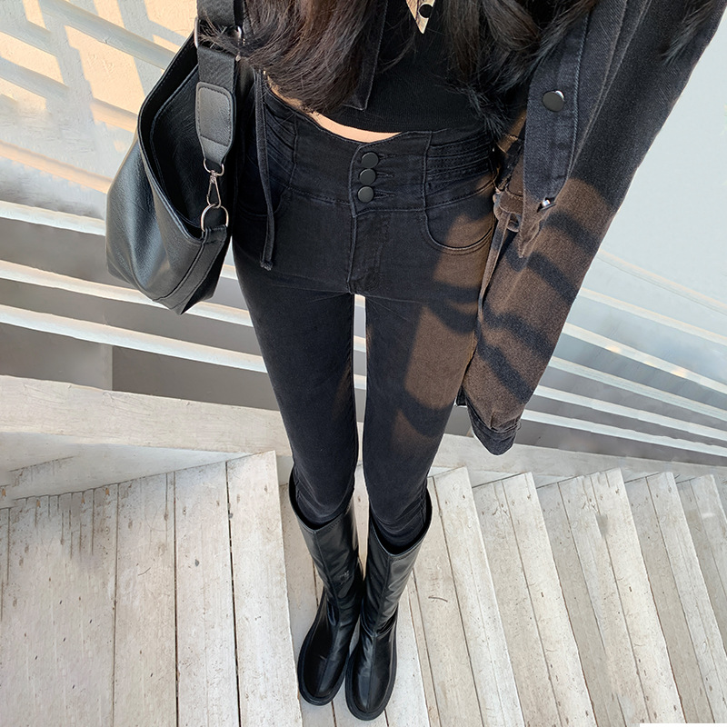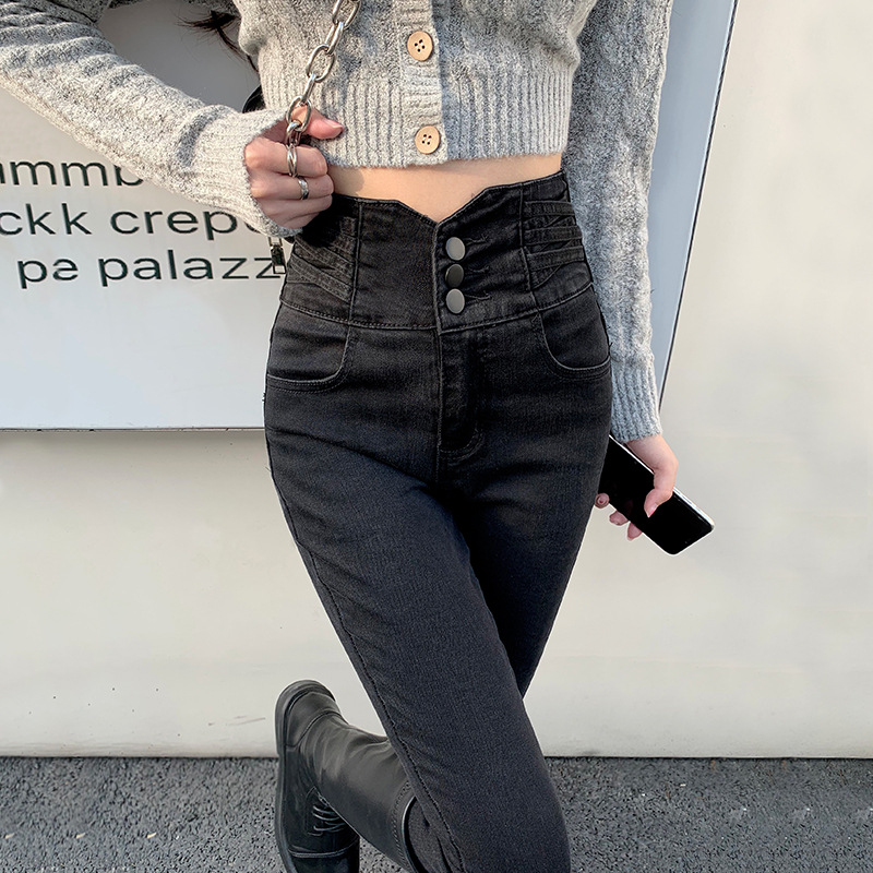 하이 웨이스트 청바지 여성의 2022 가을 새로운 온라인 연예인 라이트 컬러 슬림 룩 꽉 꽉 연필 바지스토어 가기