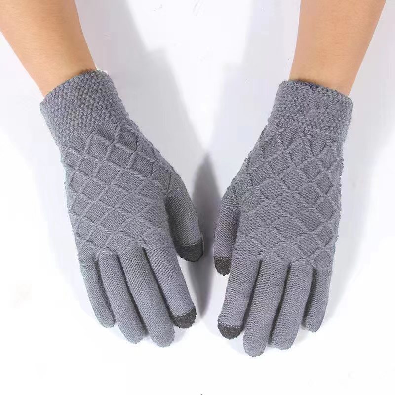 2023 새로운 남자의 자카드 터치 스크린 니트 다섯 손가락 장갑 내부 양모 장갑 겨울 따뜻한 기모 남자의 손스토어 가기