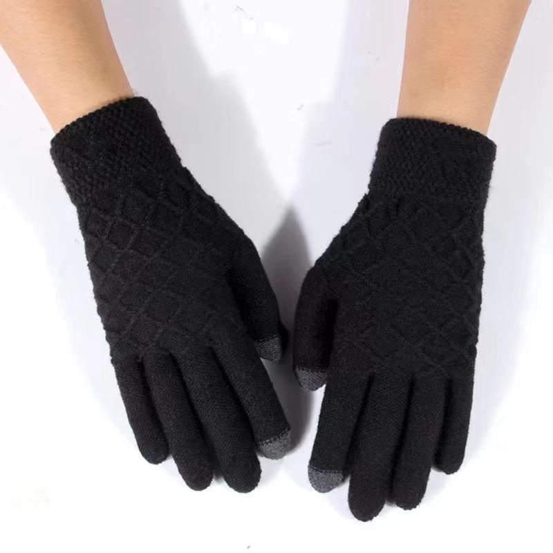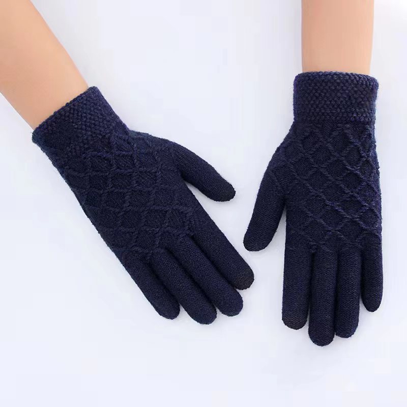 2023 새로운 남자의 자카드 터치 스크린 니트 다섯 손가락 장갑 내부 양모 장갑 겨울 따뜻한 기모 남자의 손
