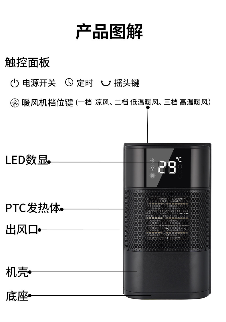 크로스 보더 US 게이지 110V 히터 타이밍 터치 스크린 사무실 데스크탑 히터 욕실 세라믹 난방 전기 히터스토어 가기