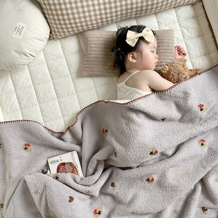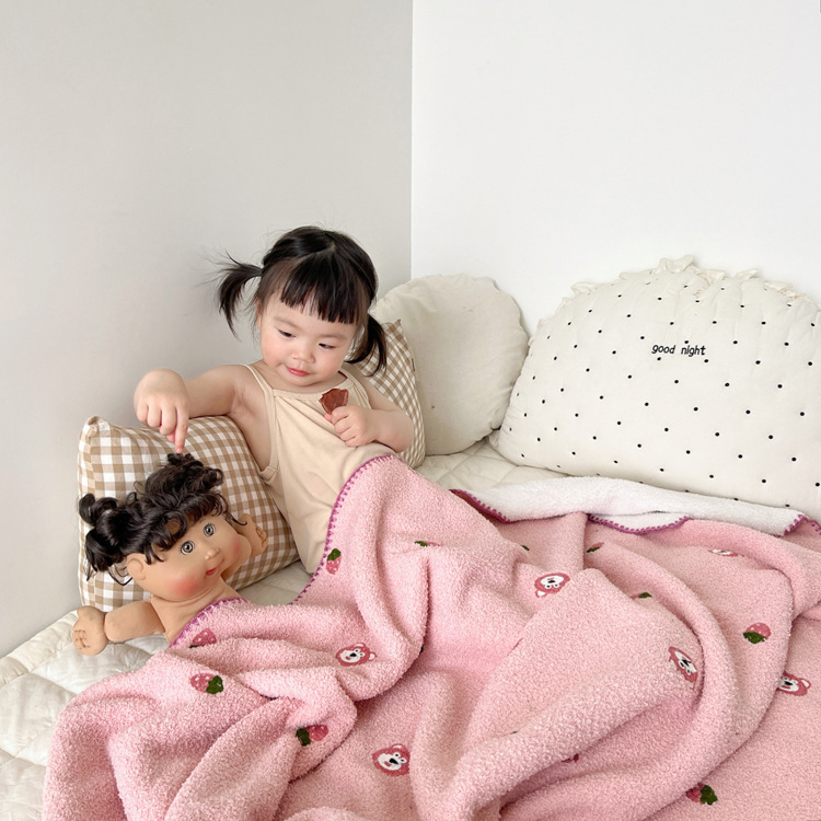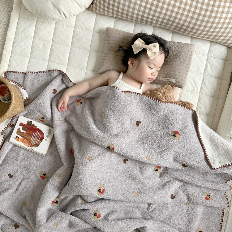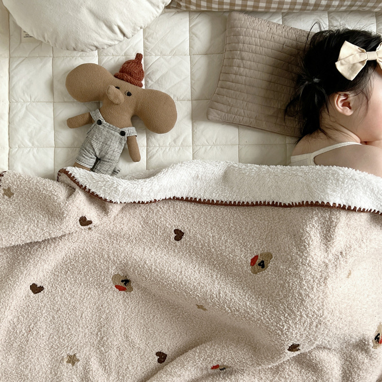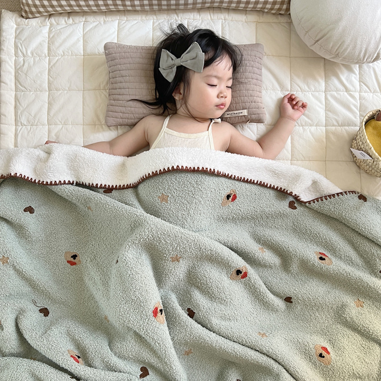 클래스 A 유아 다기능 피부 온난화 담요 만화 곰 양고기 벨벳 낮잠 담요 소파 담요 1 인용 따뜻한 담요