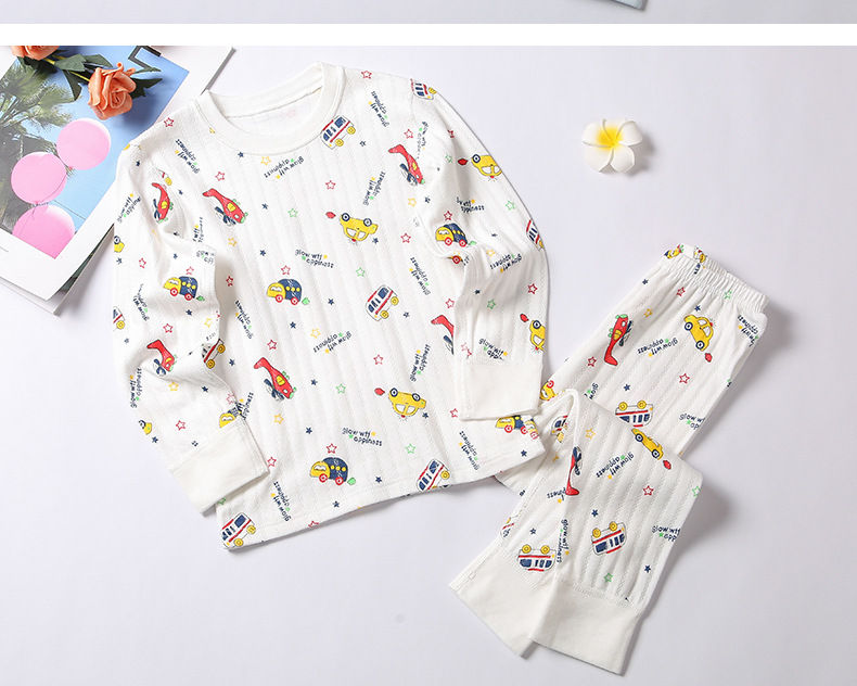 어린이 더블 레이어 자카드 면 세트 남성 아기의 가을 옷 긴팔 바지 여성의 편안한베이스 긴팔 바지 가정 의류스토어 가기
