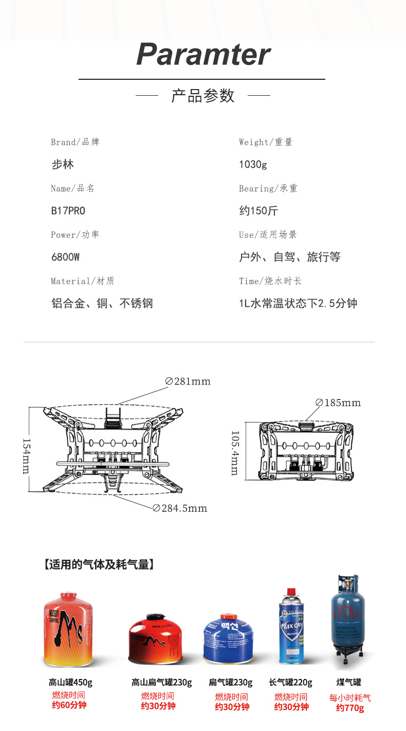 Bulin B17PRO 야외 스토브 바람 방지 가스 스토브 캠핑 가스 스토브 피크닉 필드 쿠커 고출력 치열한 스토브스토어 가기