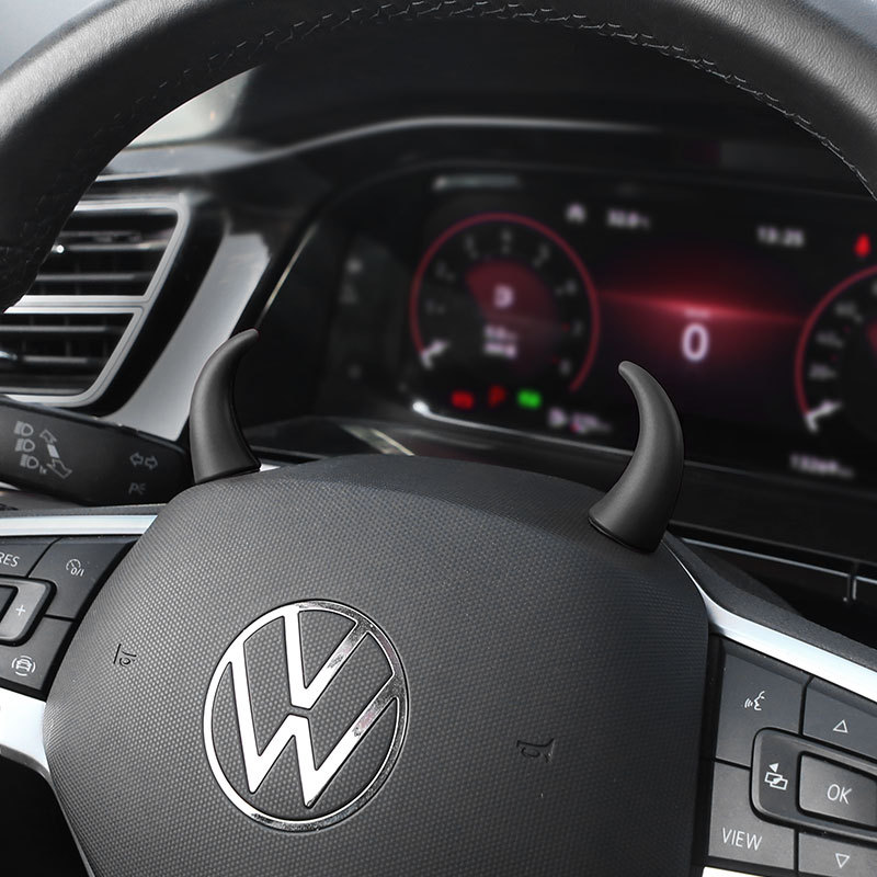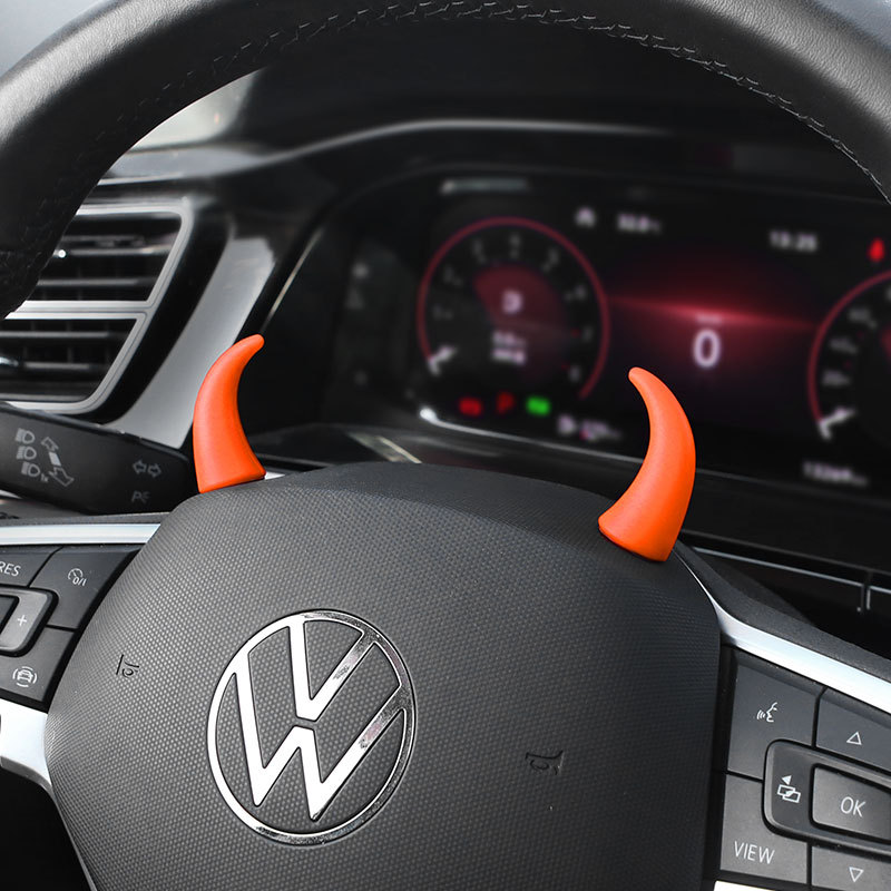 창조적 인 재미있는 자동차 센터 콘솔 디스플레이 송아지 경적 스티어링 휠 악마 경적 귀여운 자동차 장식스토어 가기
