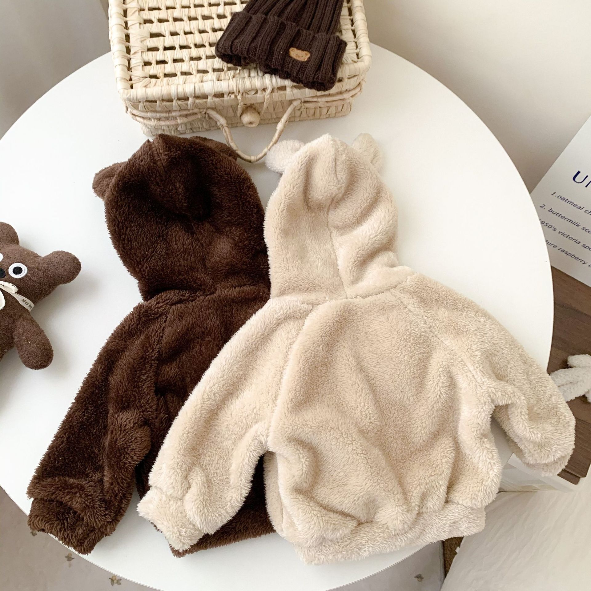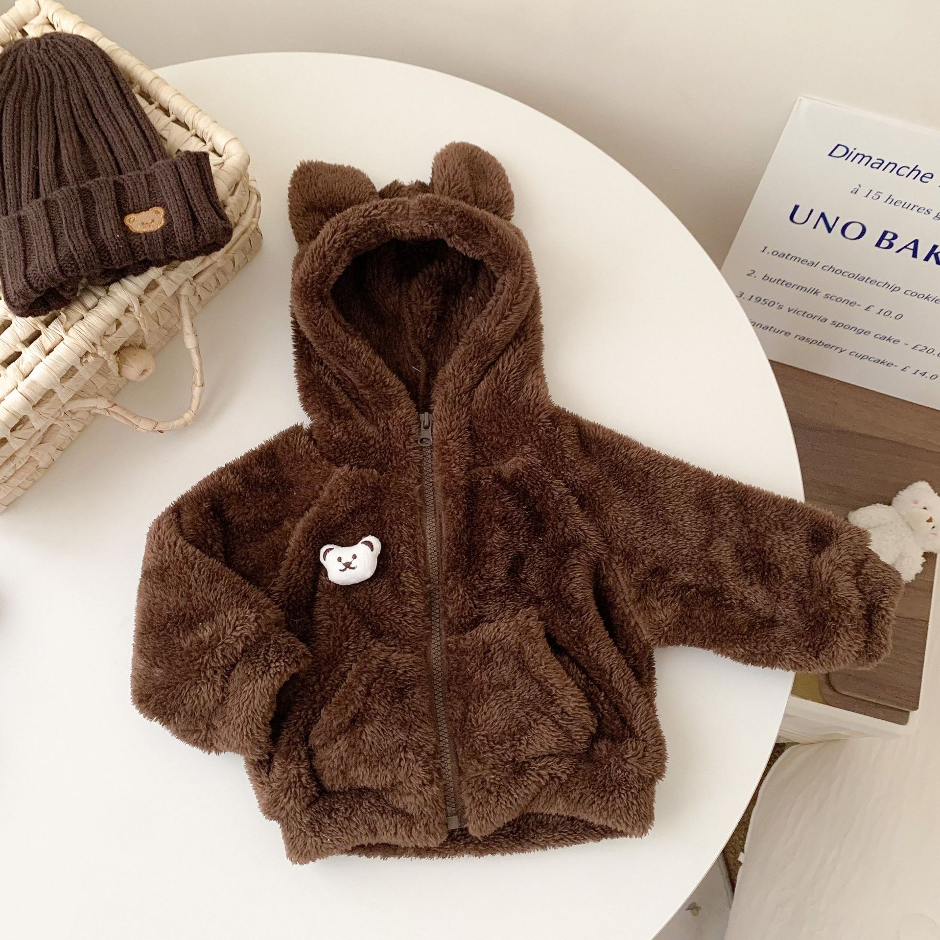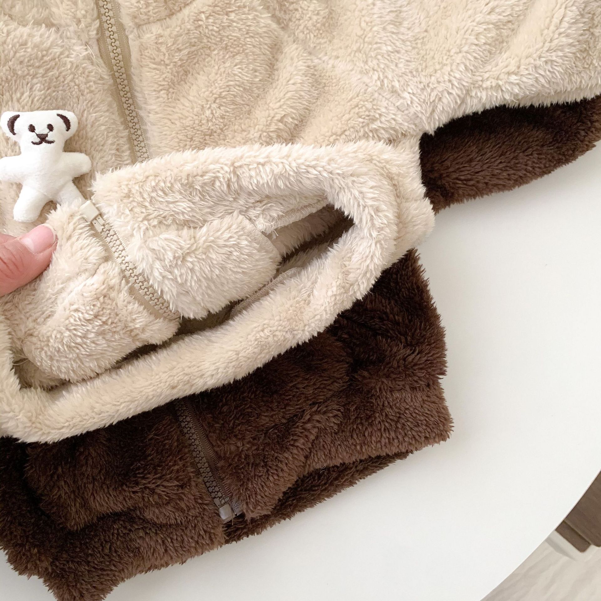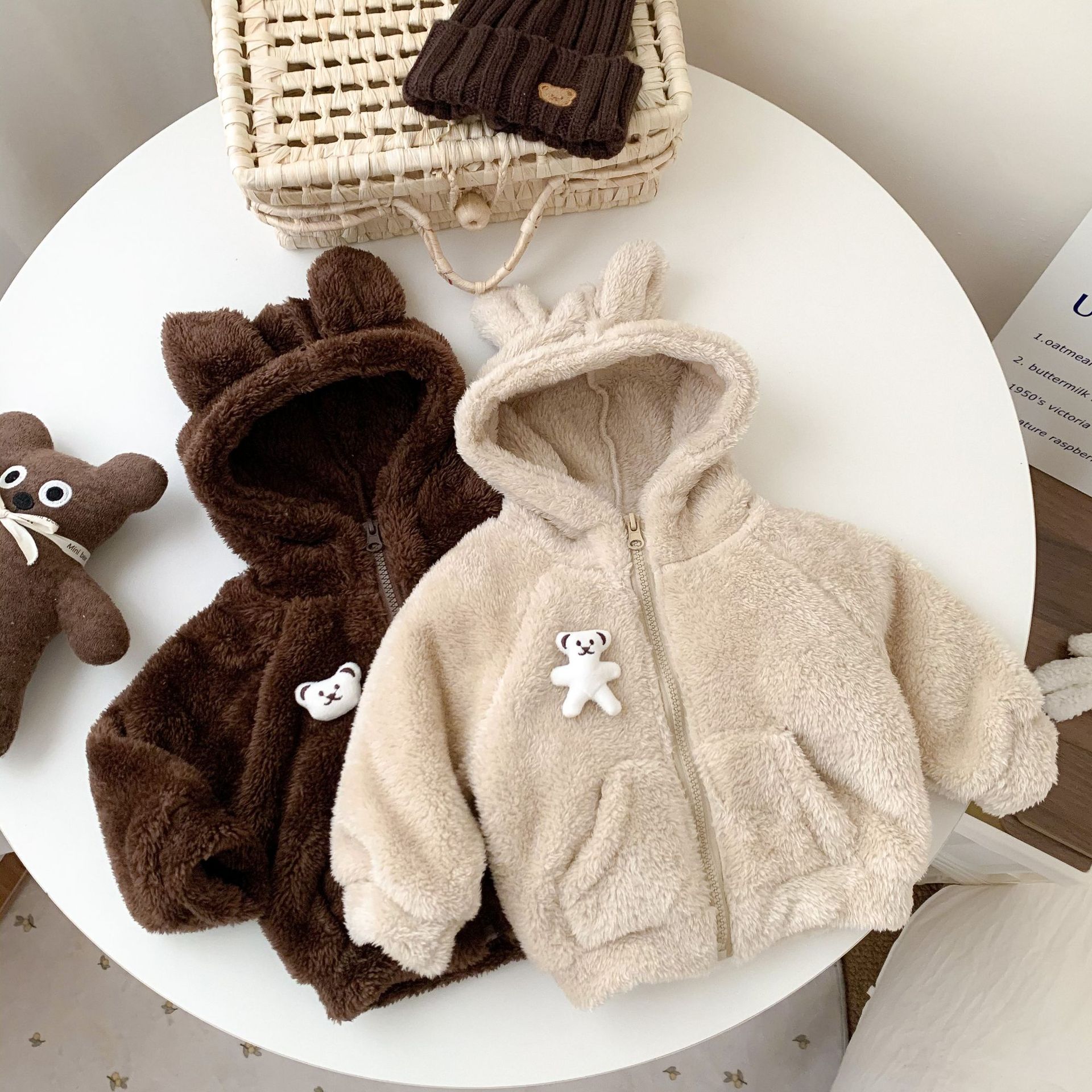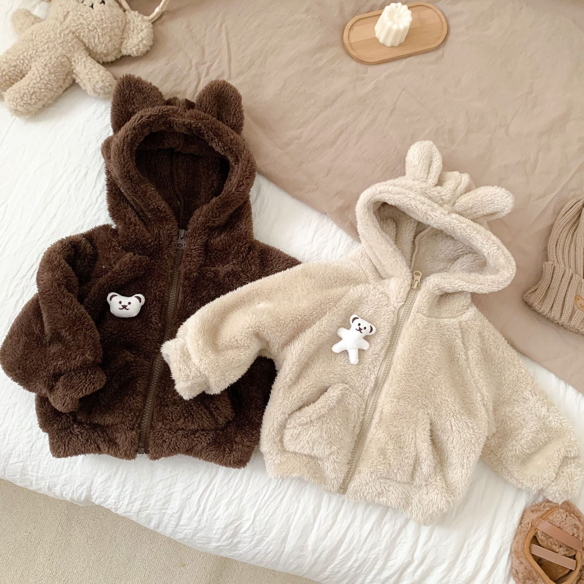 인스 한국판 겨울 곰돌이 플러시 귀여운 코트 아기용 보온 두꺼운 상의 트렌디한 한국 스타일 캐주얼