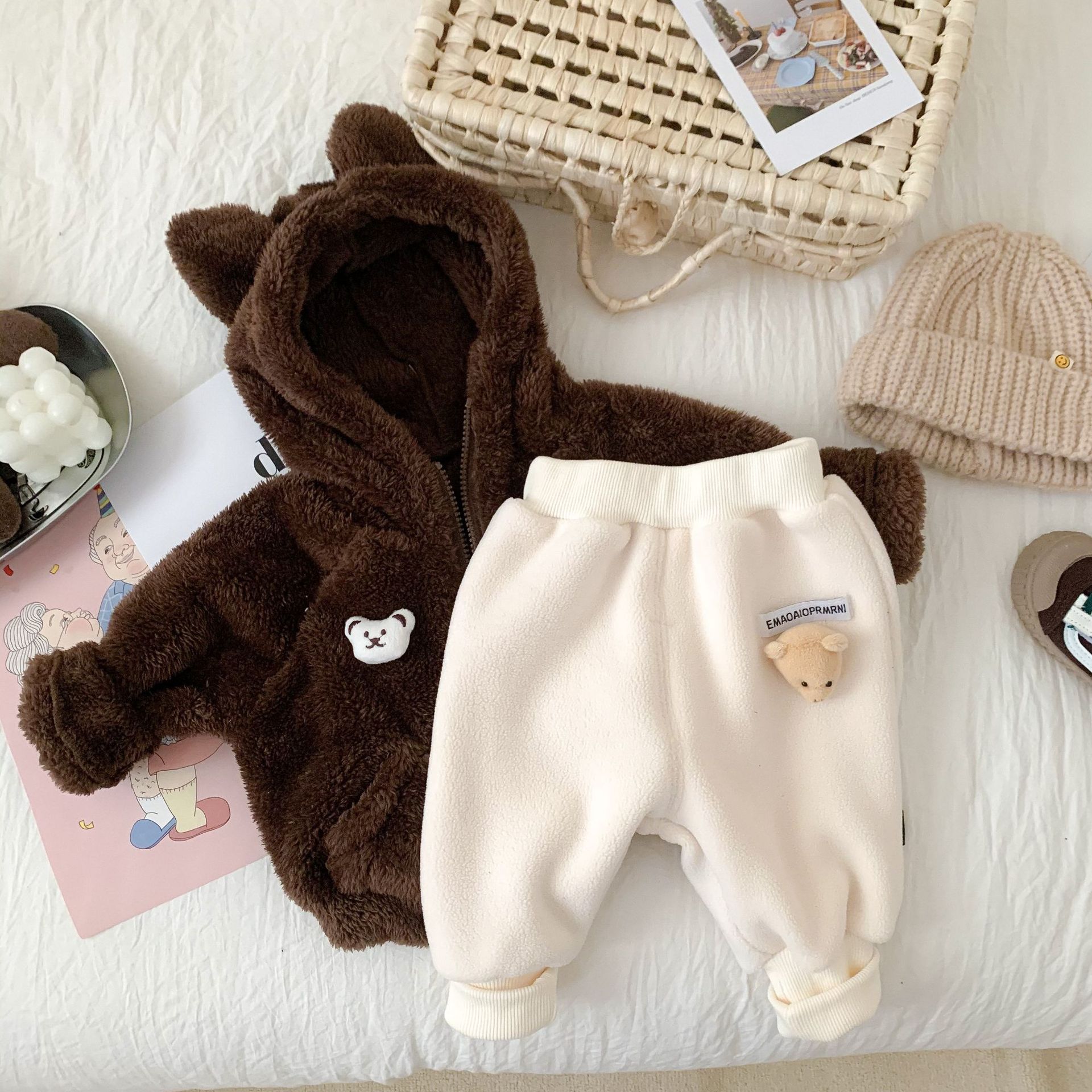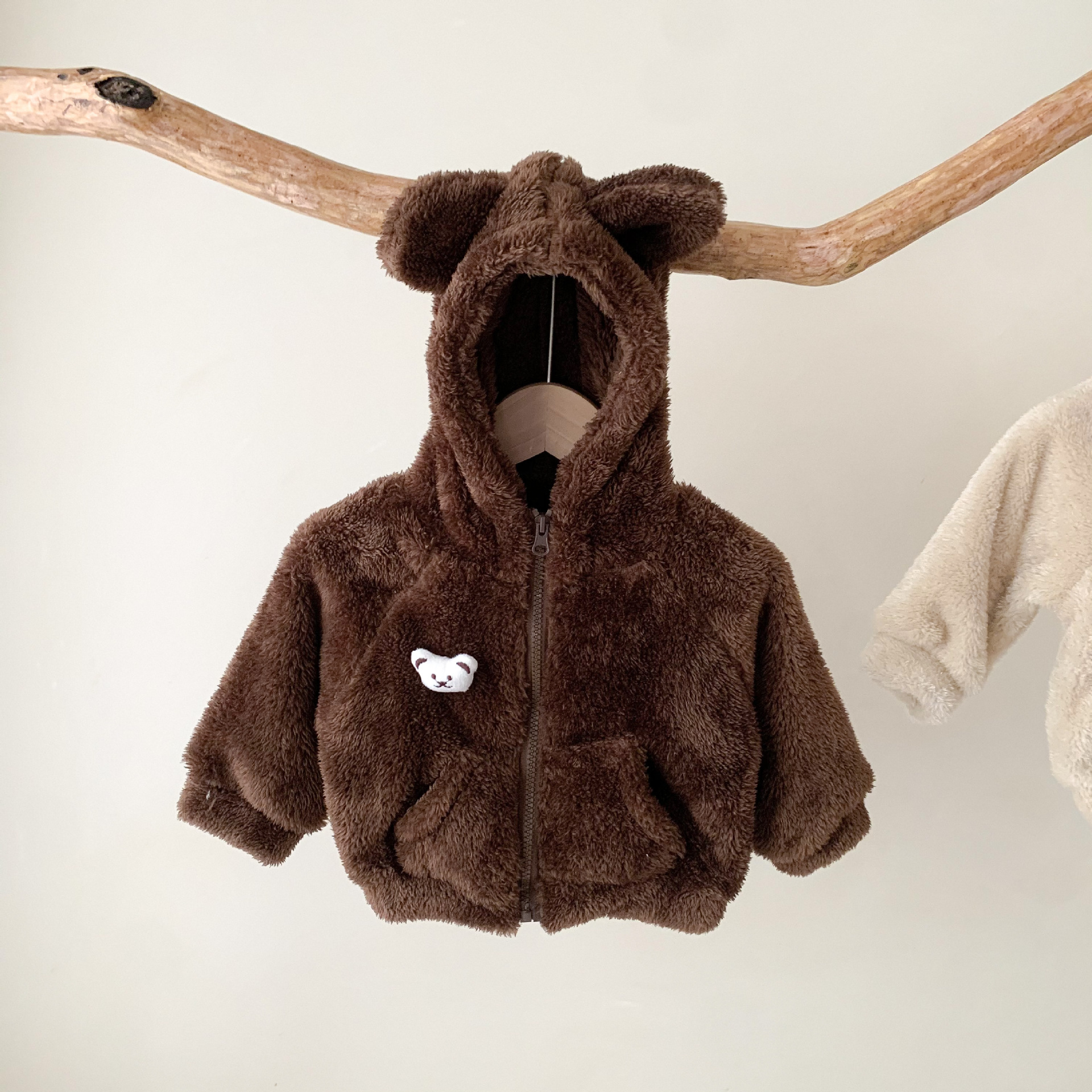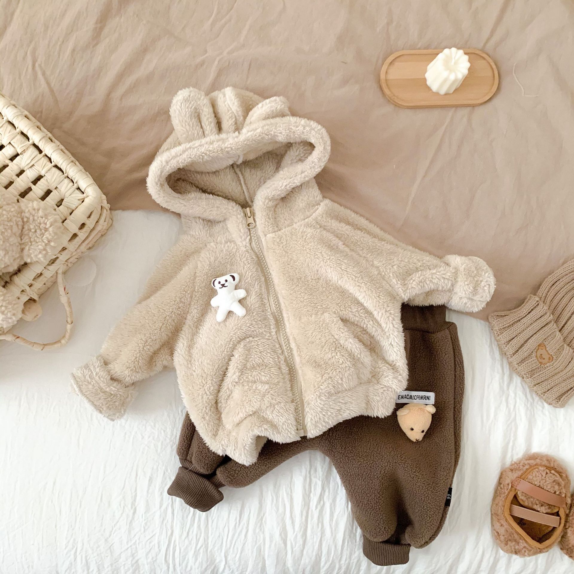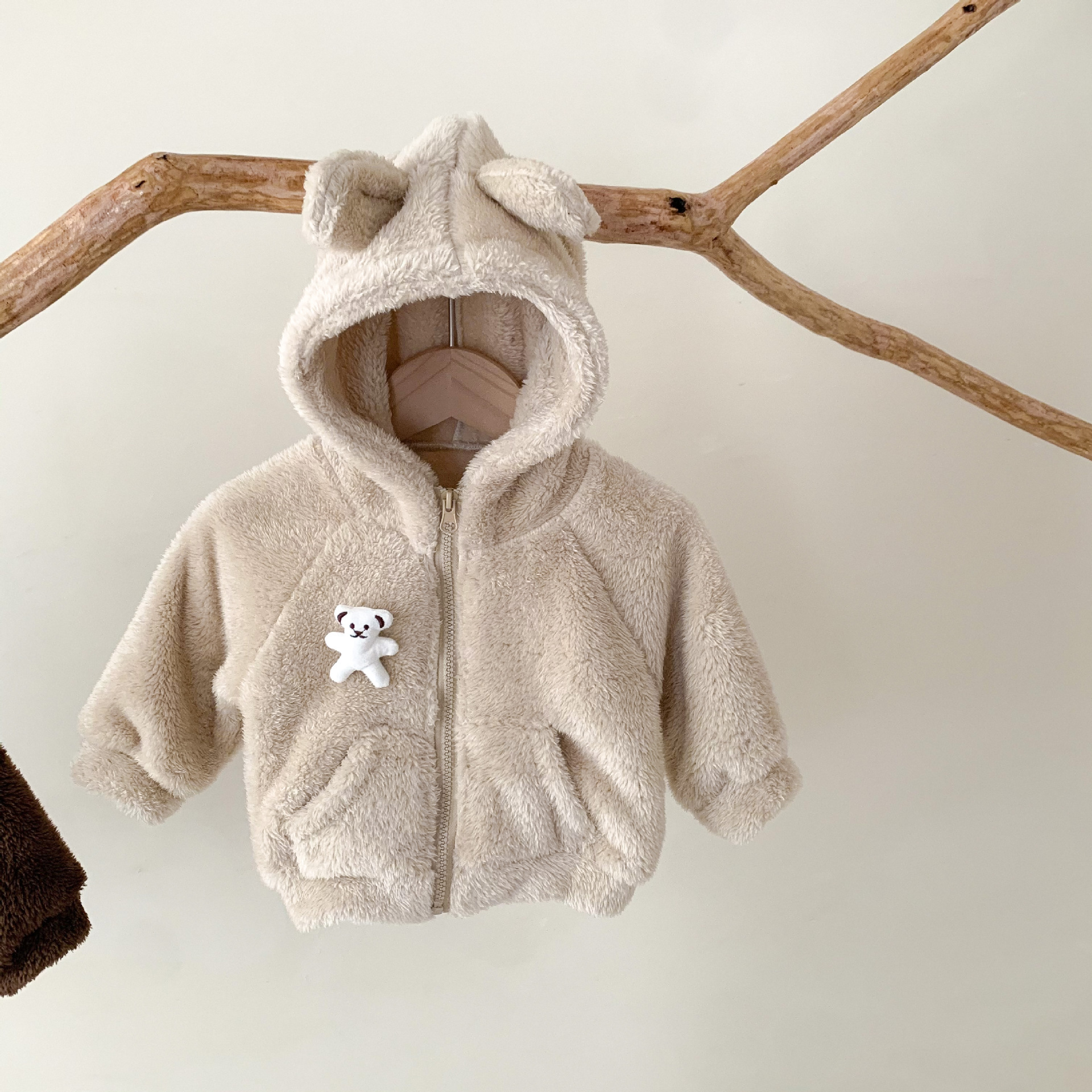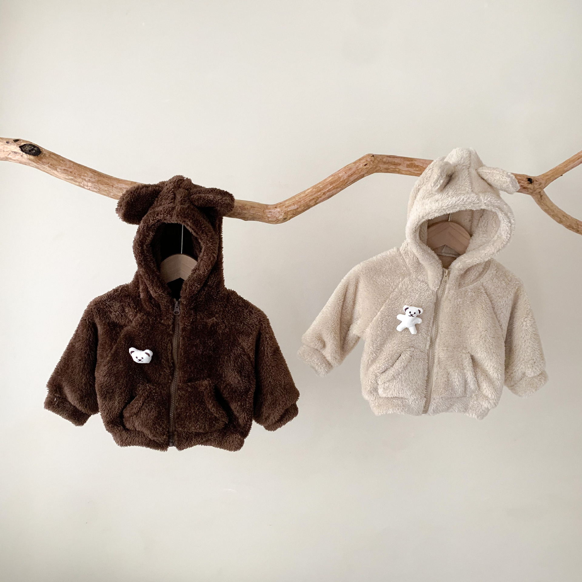 인스 한국판 겨울 곰돌이 플러시 귀여운 코트 아기용 보온 두꺼운 상의 트렌디한 한국 스타일 캐주얼