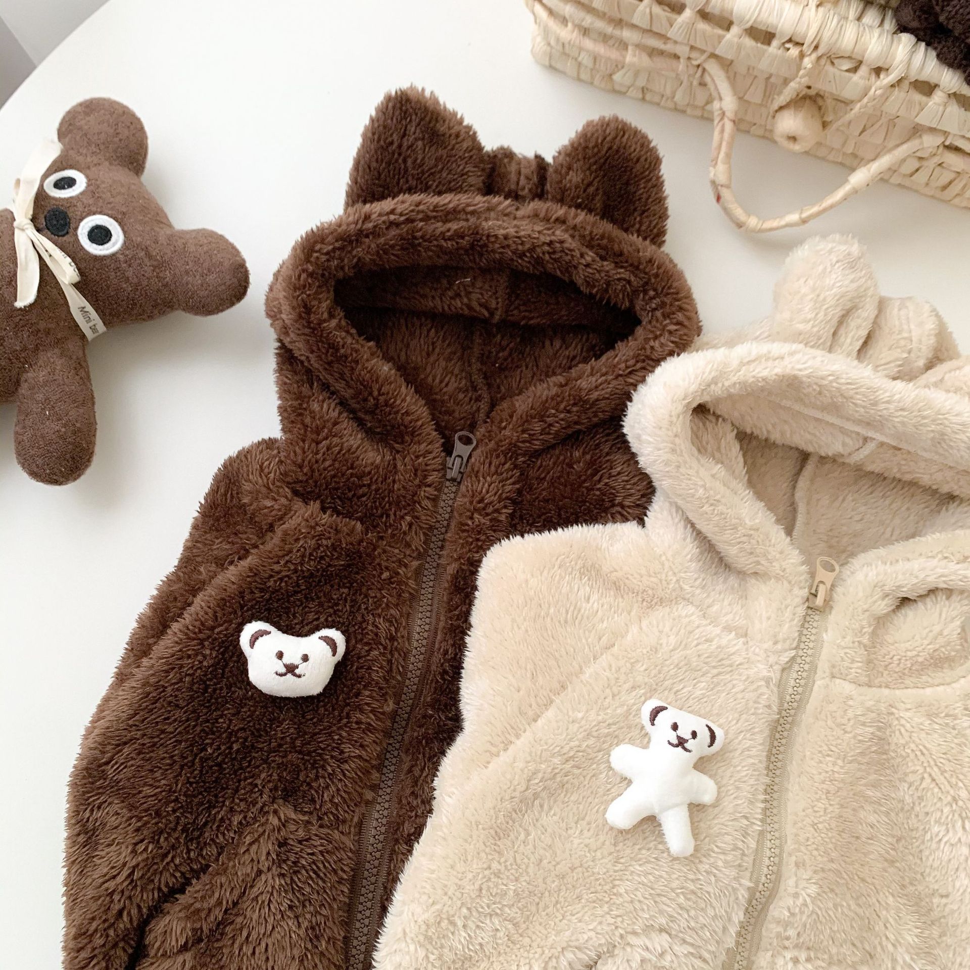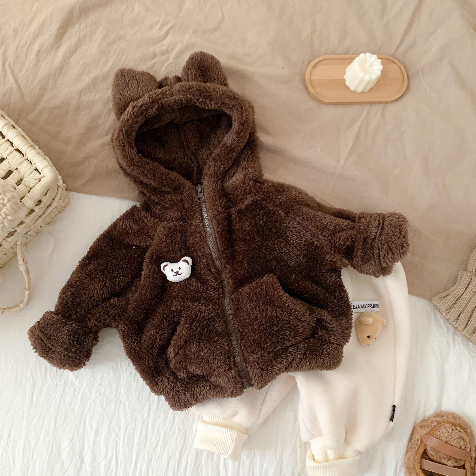 인스 한국판 겨울 곰돌이 플러시 귀여운 코트 아기용 보온 두꺼운 상의 트렌디한 한국 스타일 캐주얼스토어 가기