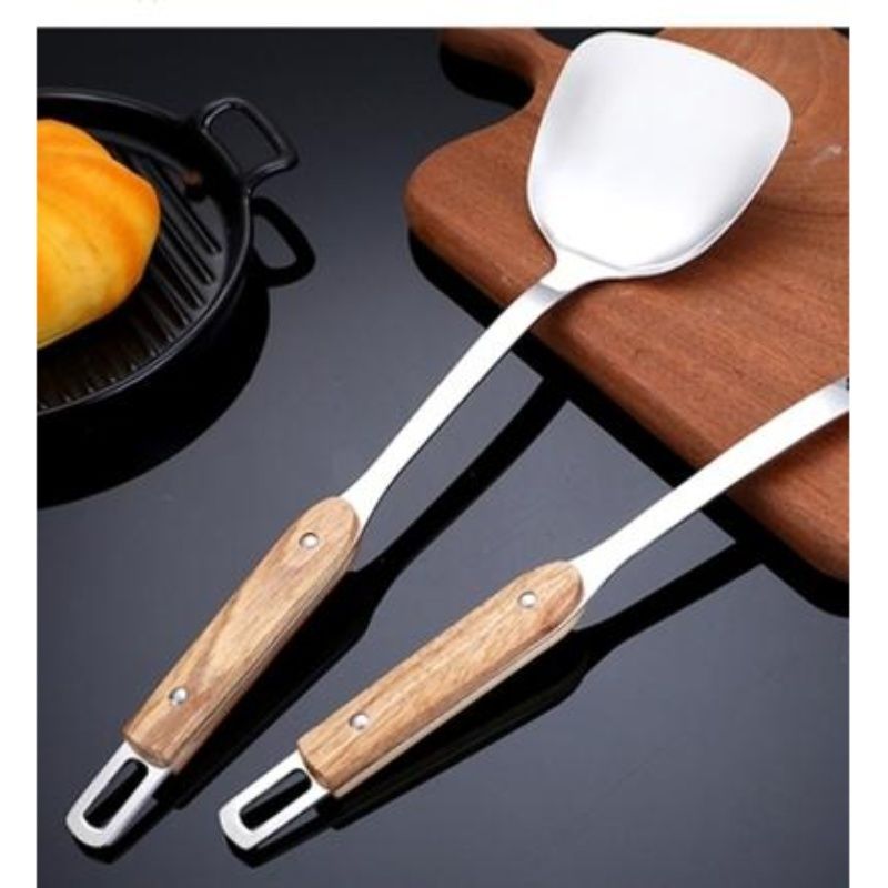201 스테인리스 스틸 주걱, 나무 손잡이, 요리용 주걱, 국자, 거름망, 나무 손잡이 장갑, 두껍고 내구성이 뛰어난 긴 손잡이스토어 가기