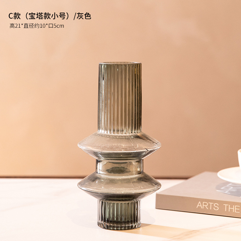 북유럽 스타일 기하학적 창조적 인 호박 유리 꽃병 현대 거실 홈 창조적 인 장식 데스크탑 수경 꽃 장치