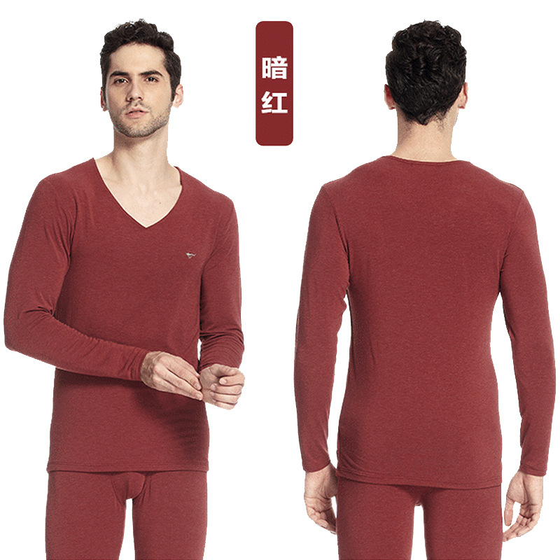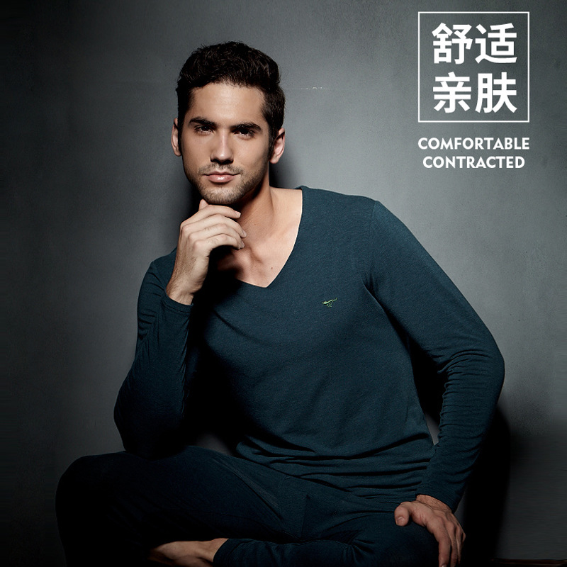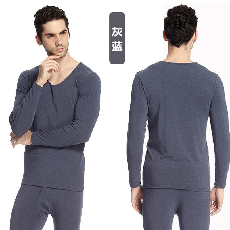 Septwolves 부드러운 슬림 핏 V-넥 남성 가을 옷 세트 봄과 가을 얇은 스트레치 더블 레이어 기본 남성 속옷