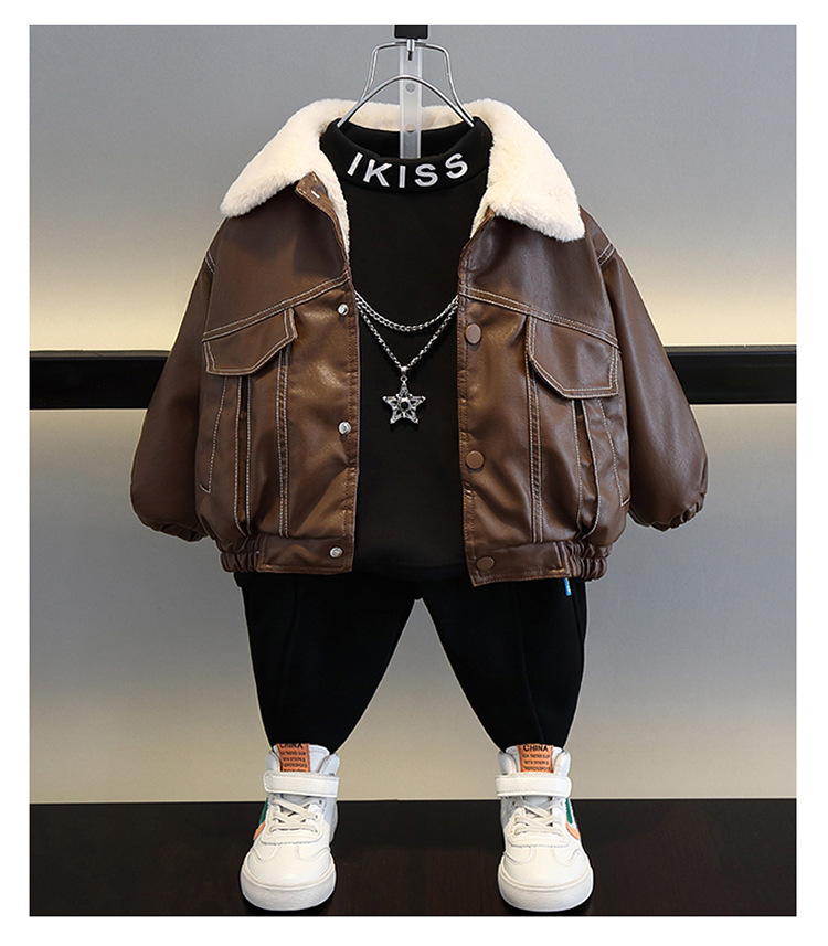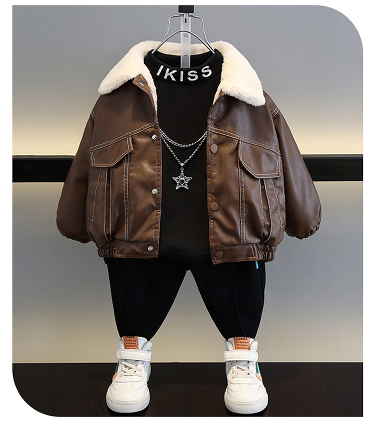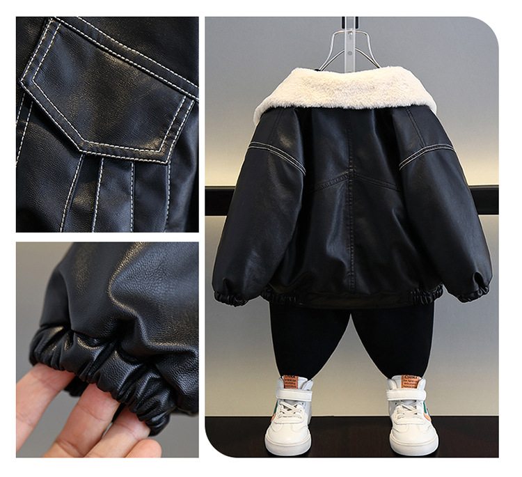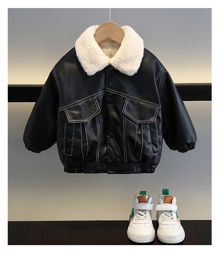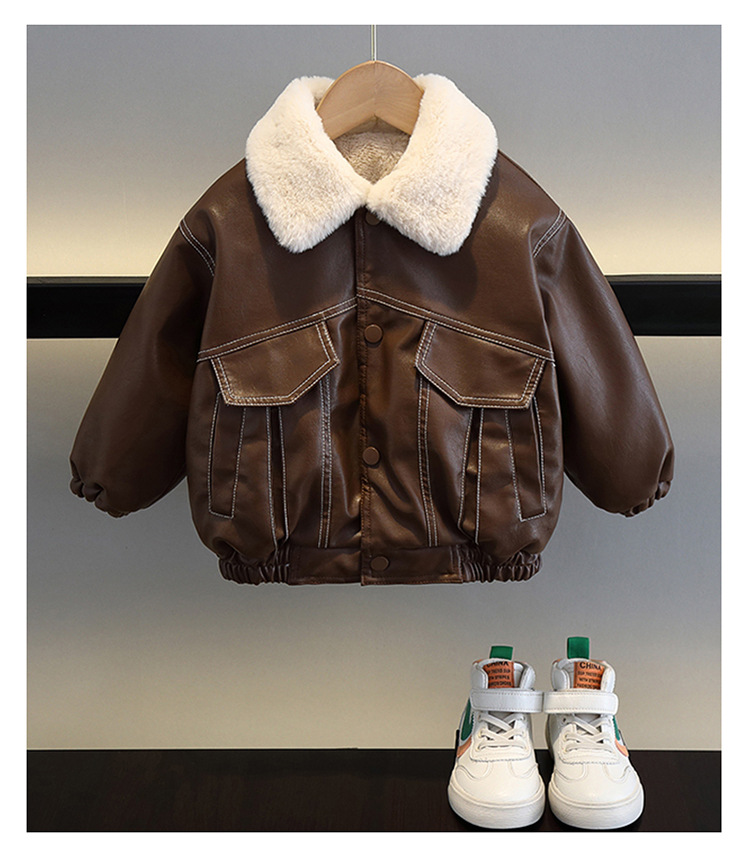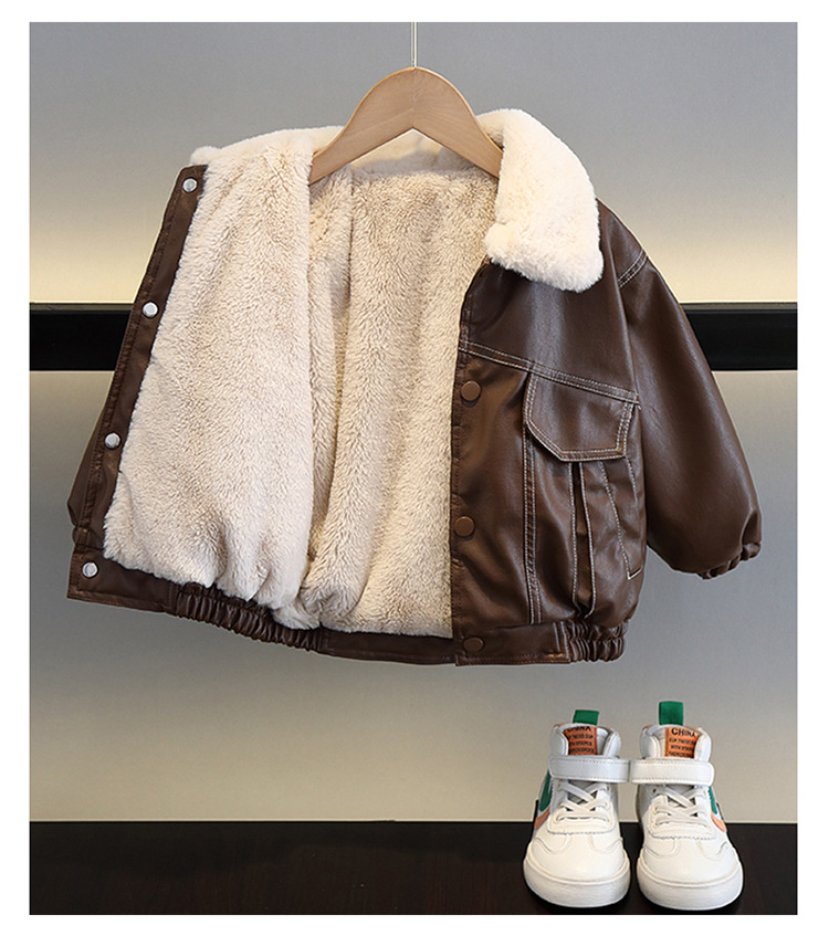 어린이 착용 소년 기모 가죽 자켓 2025 새로운 아기 겨울 옷 어린이 두꺼운 따뜻한 가죽 자켓