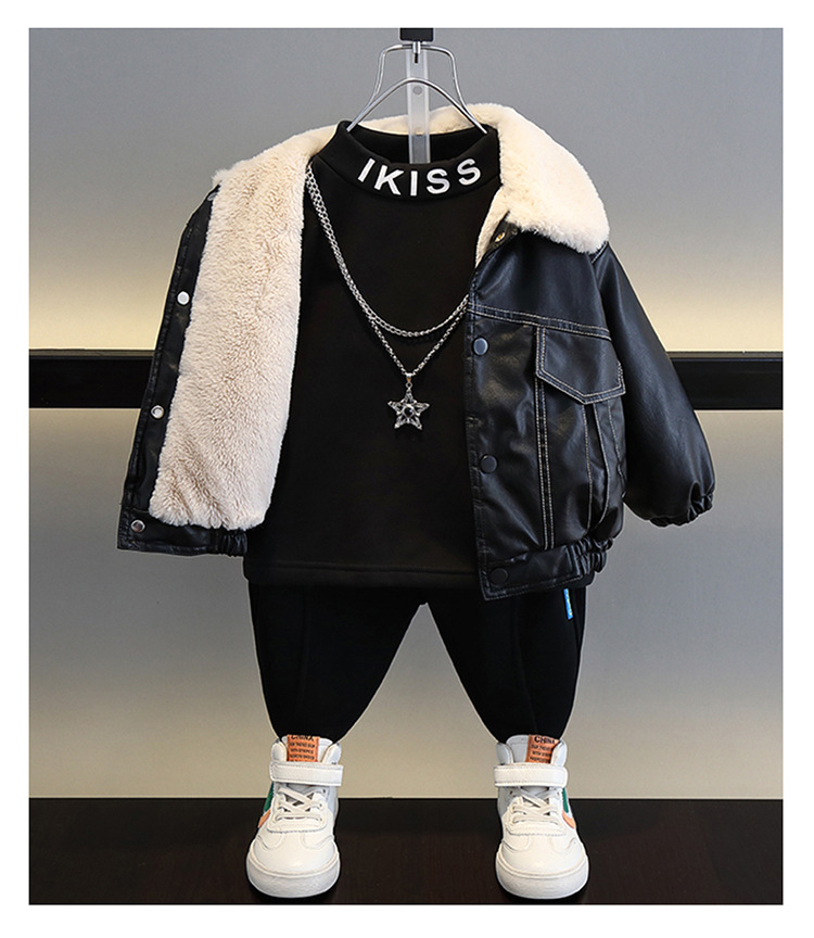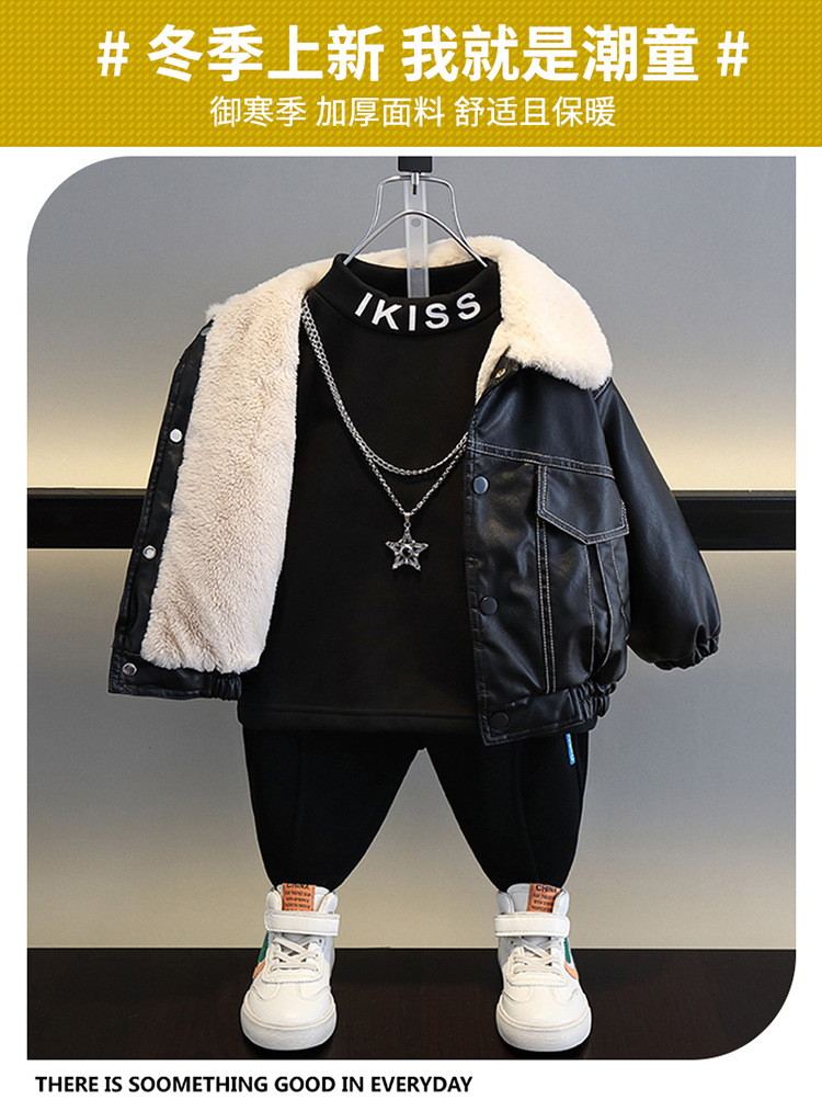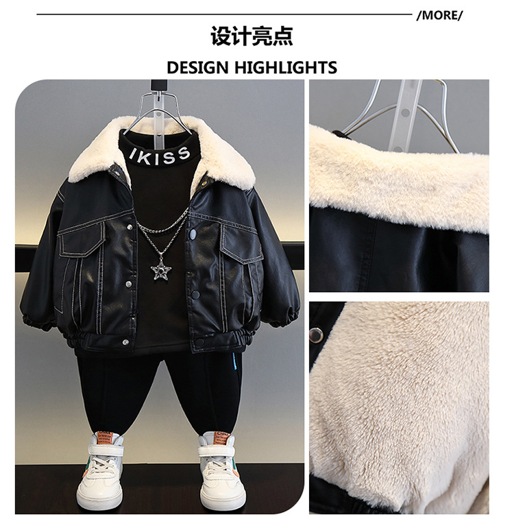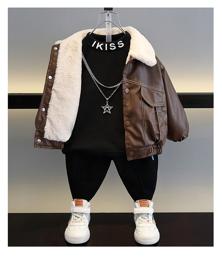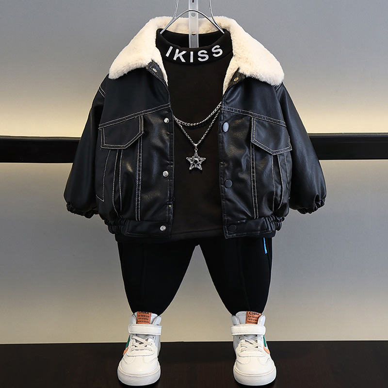 어린이 착용 소년 기모 가죽 자켓 2025 새로운 아기 겨울 옷 어린이 두꺼운 따뜻한 가죽 자켓