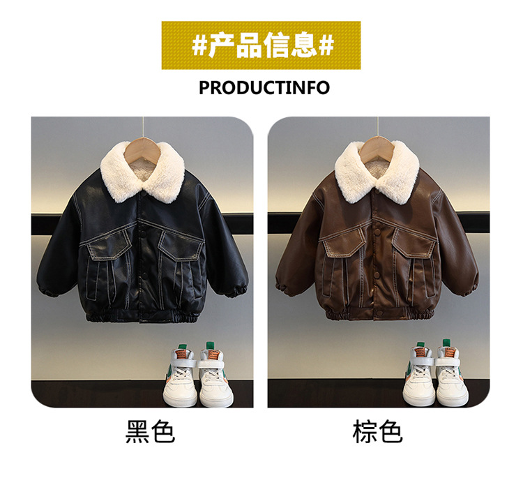 어린이 착용 소년 기모 가죽 자켓 2025 새로운 아기 겨울 옷 어린이 두꺼운 따뜻한 가죽 자켓스토어 가기