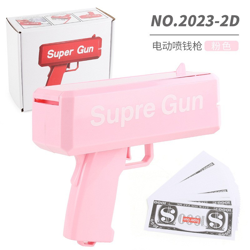 • 화이트 박스 큰 힘 핑크 돈 스프레이 슈퍼 총 + 100 종이 돈 볼륨 0.5kg 총