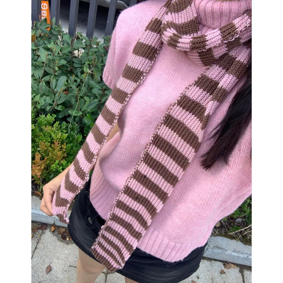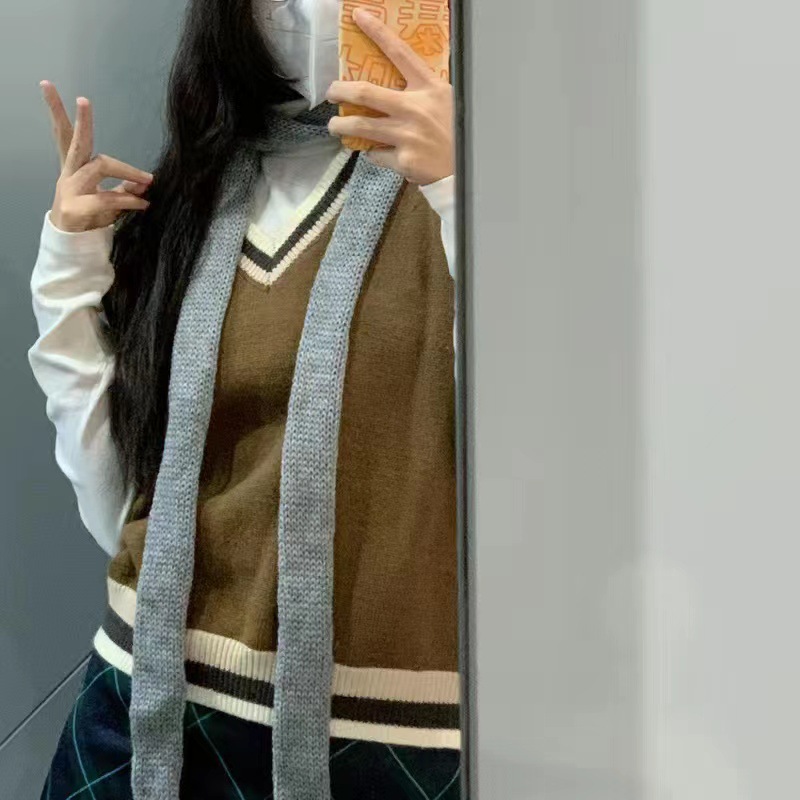 펑크 하라주쿠 하위 문화 2 차원 스트라이프 얇은 스카프 남성과 여성을위한 두꺼운 니트 오목한 모양 장식 스카프 뜨거운 소녀스토어 가기