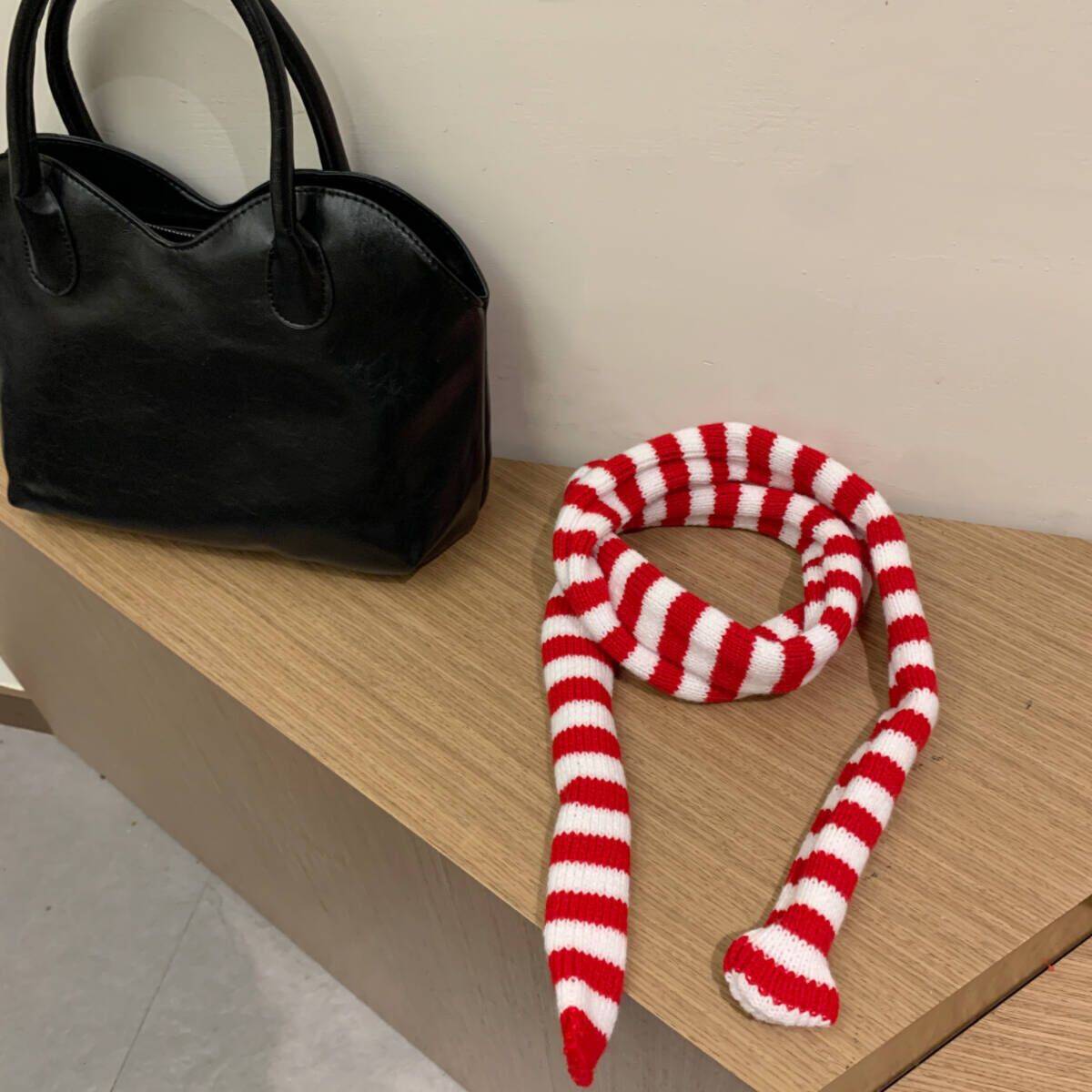 • 니트 빨간색과 흰색 핀스트라이프