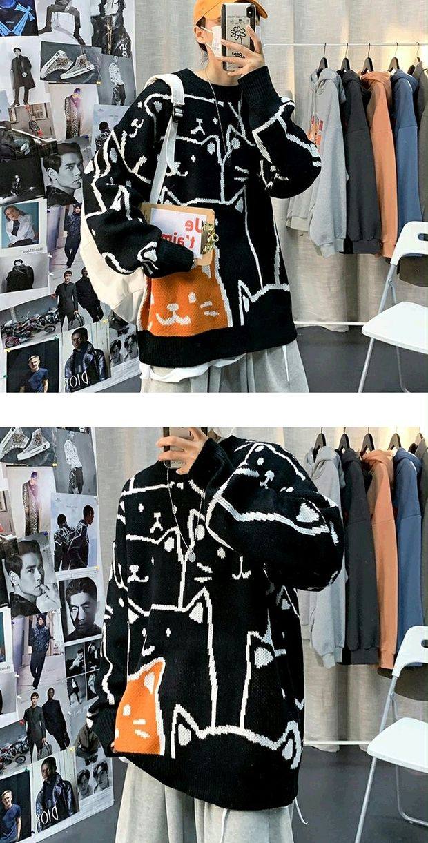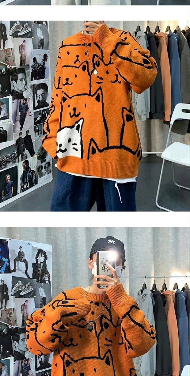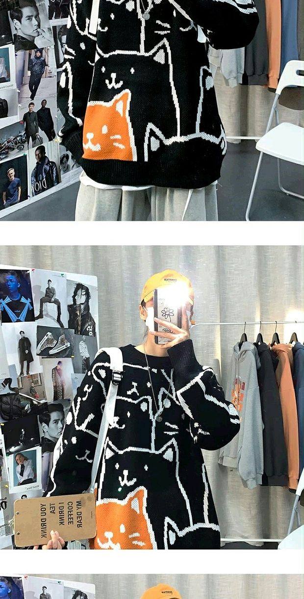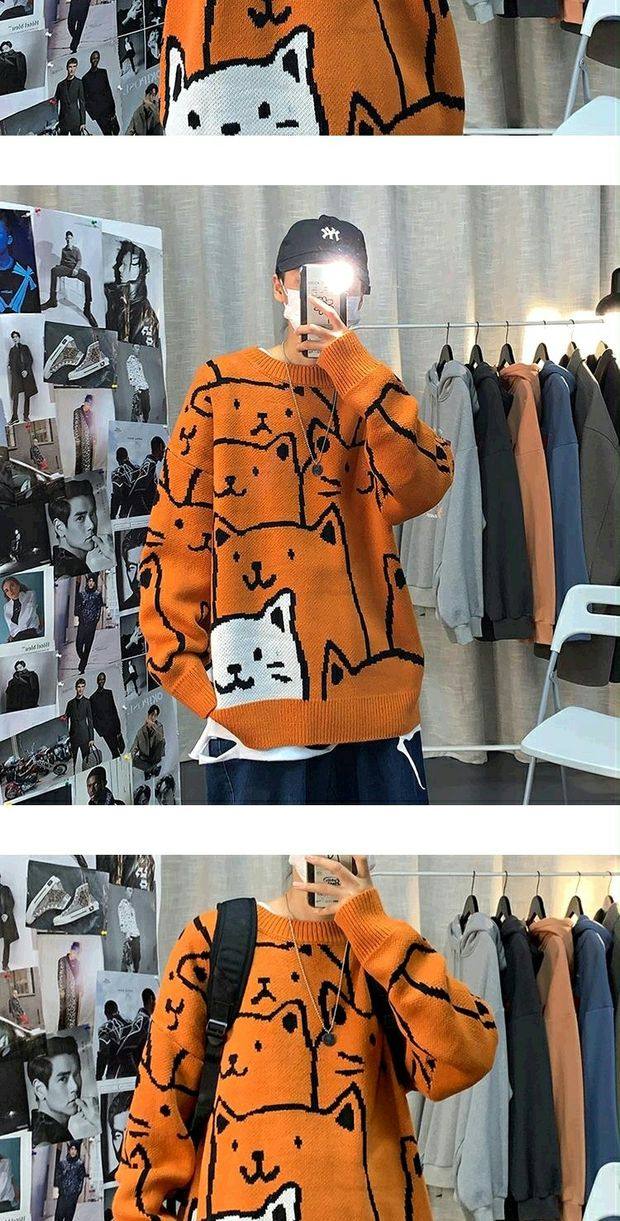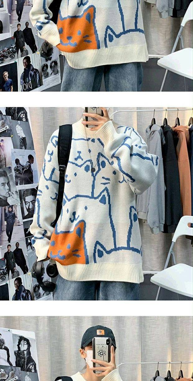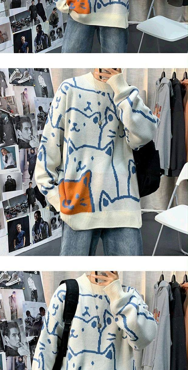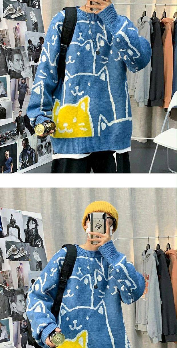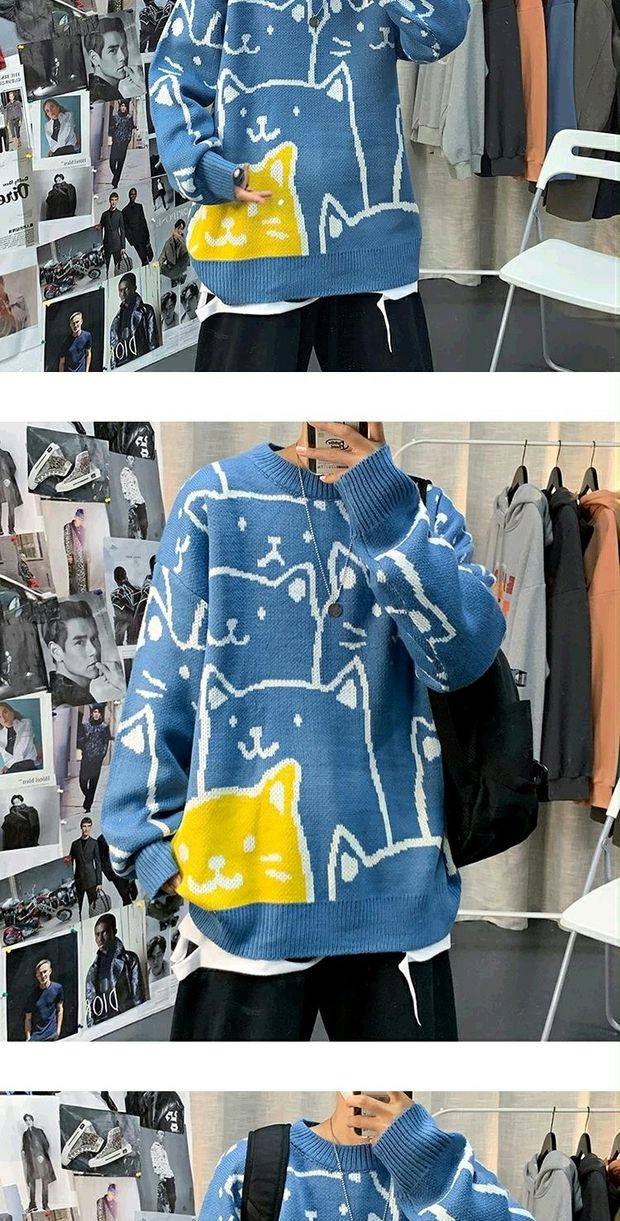 홍콩 스타일 재미 곰 만화 캐주얼 니트웨어 남자의 가을과 겨울 커플 의류 한국 스타일 게으른 스타일 구별 스웨터스토어 가기