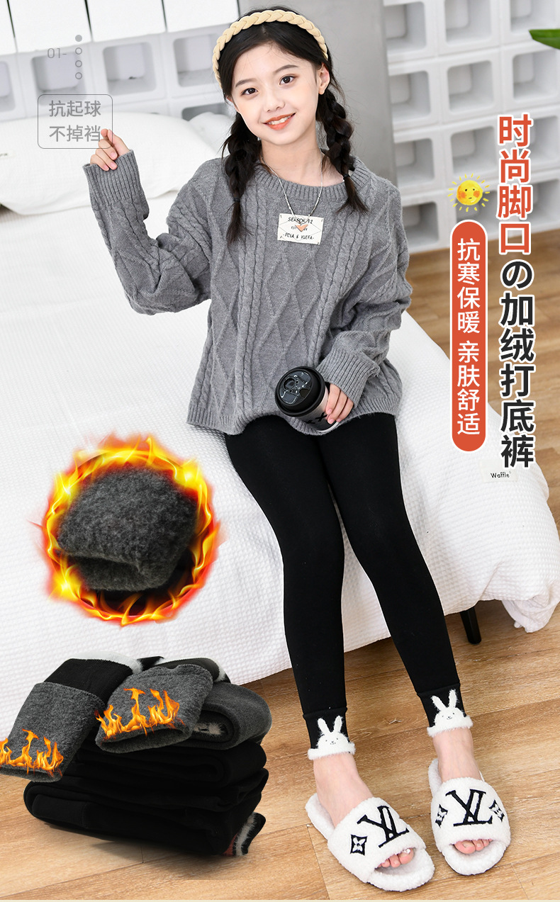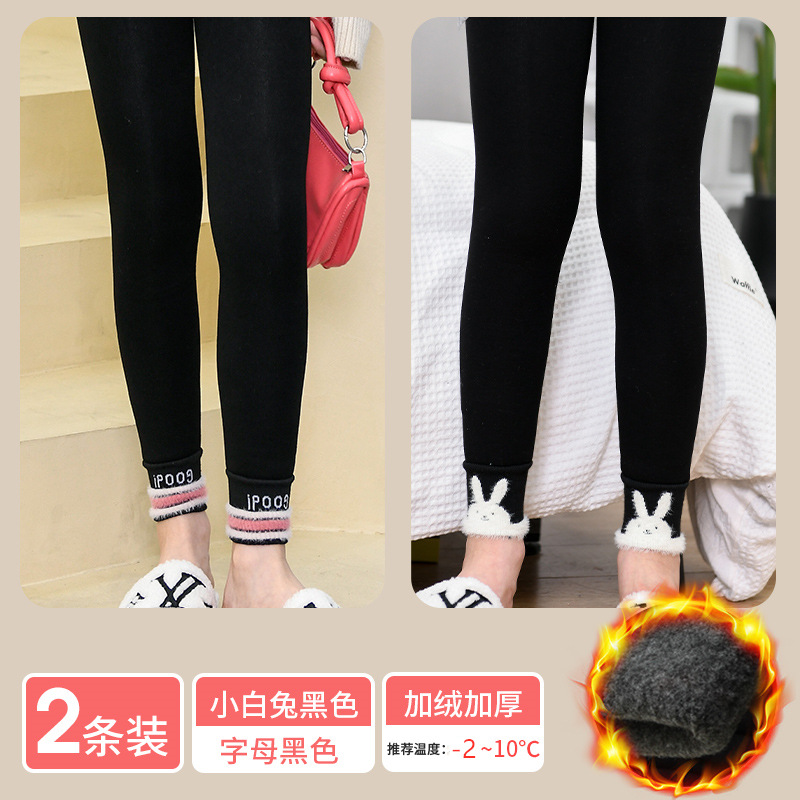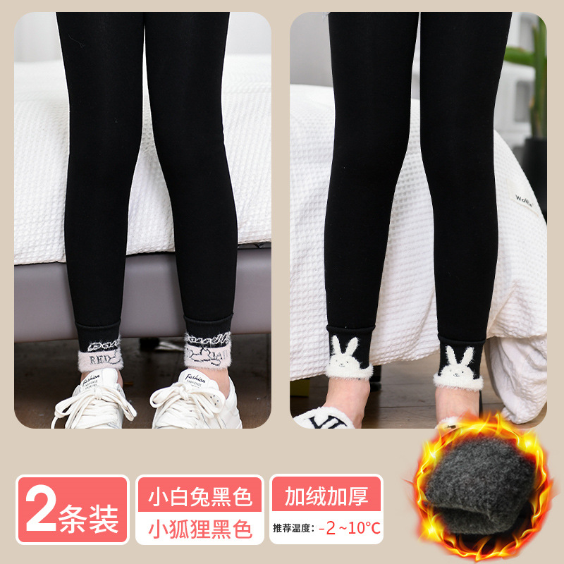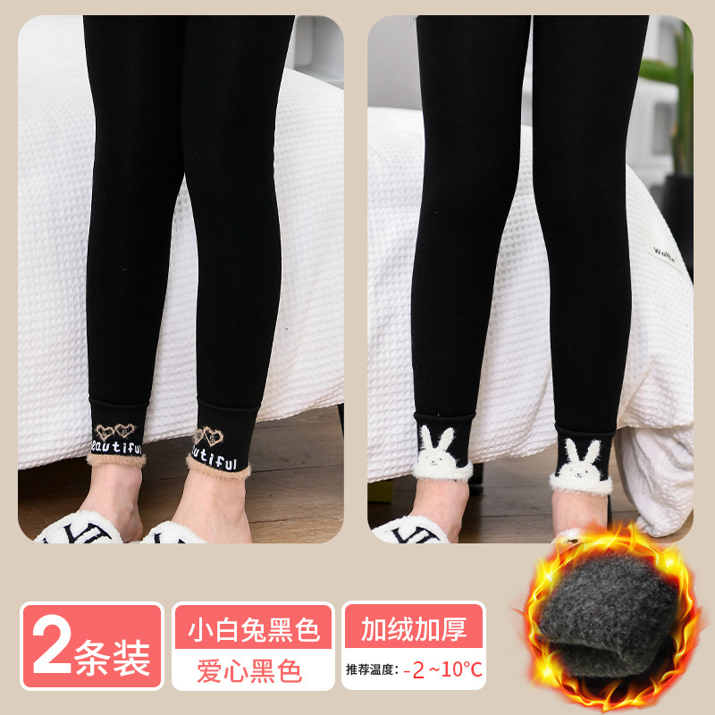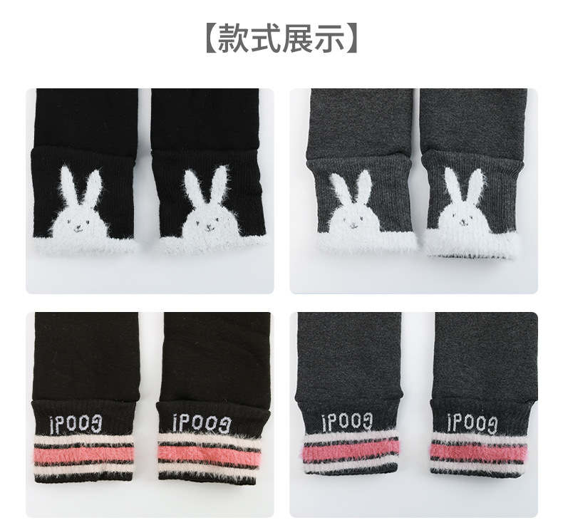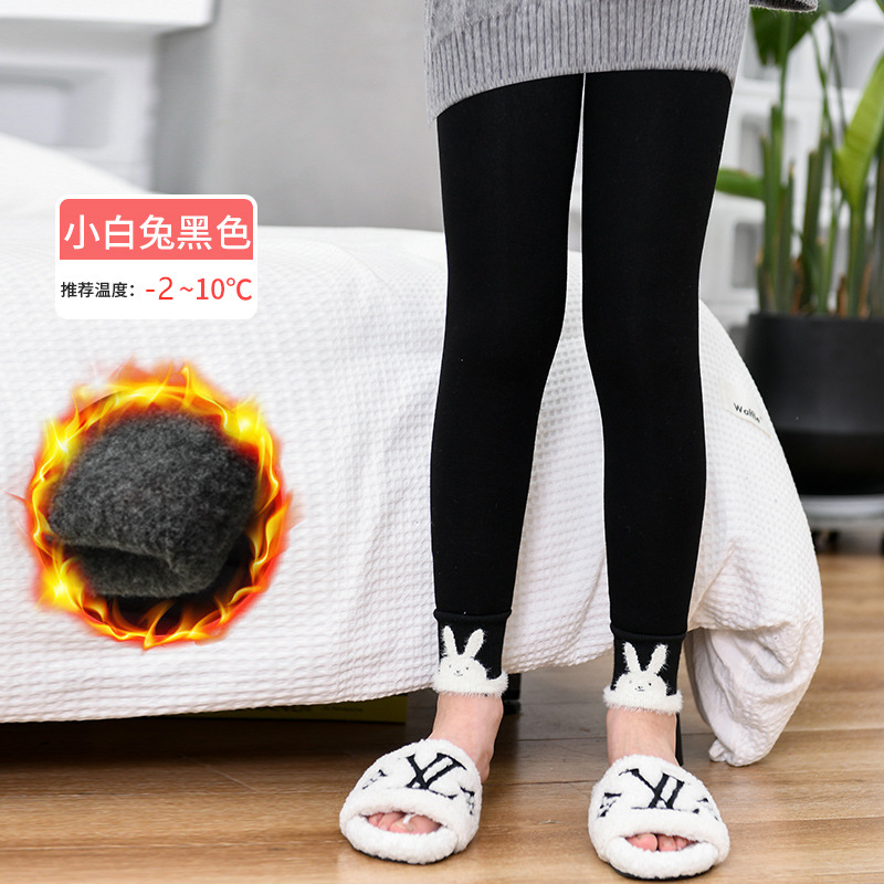 겨울 기모 두꺼운 여아 레깅스 토끼 어린이 바지 따뜻한 고탄성 허리 보호 허리 입 고탄성