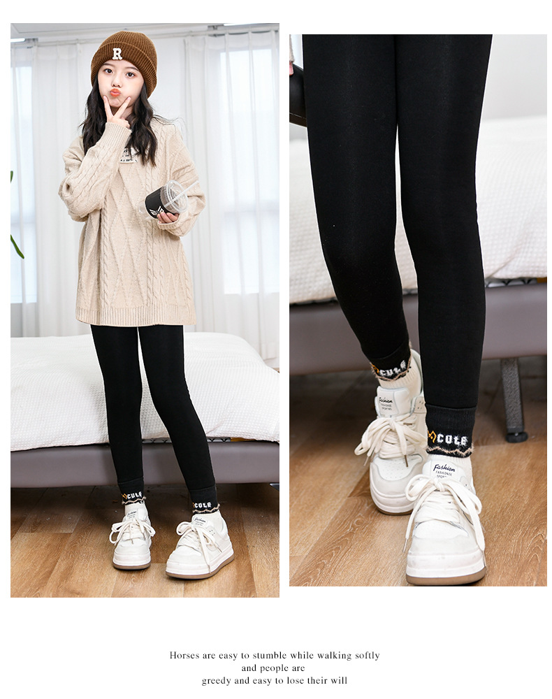 겨울 기모 두꺼운 여아 레깅스 토끼 어린이 바지 따뜻한 고탄성 허리 보호 허리 입 고탄성스토어 가기