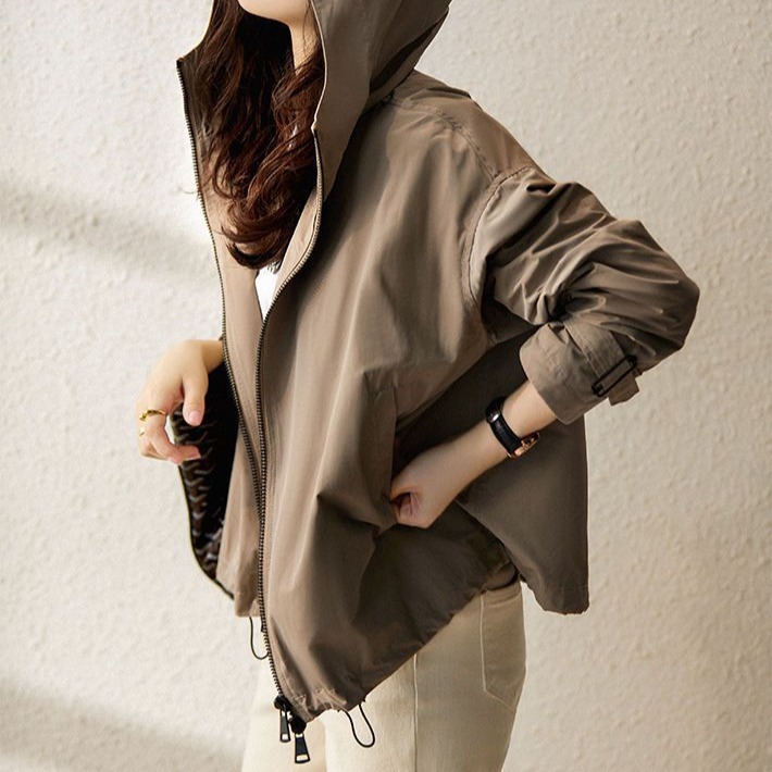 패션 캐주얼 후드 재킷 코트 여성의 2022 가을 새로운 모든 매치 단색 짧은 지퍼 코트