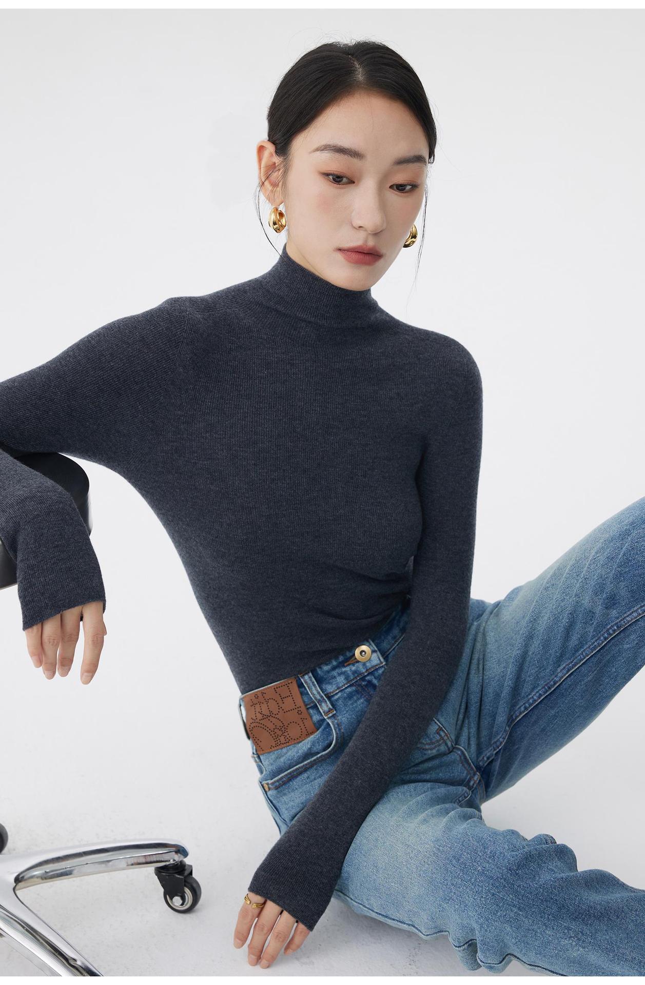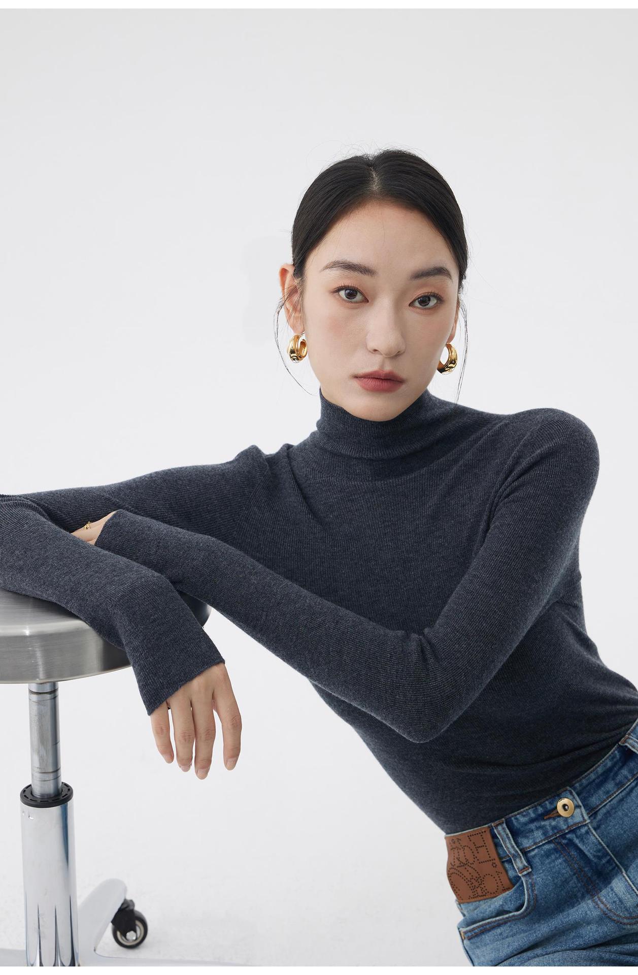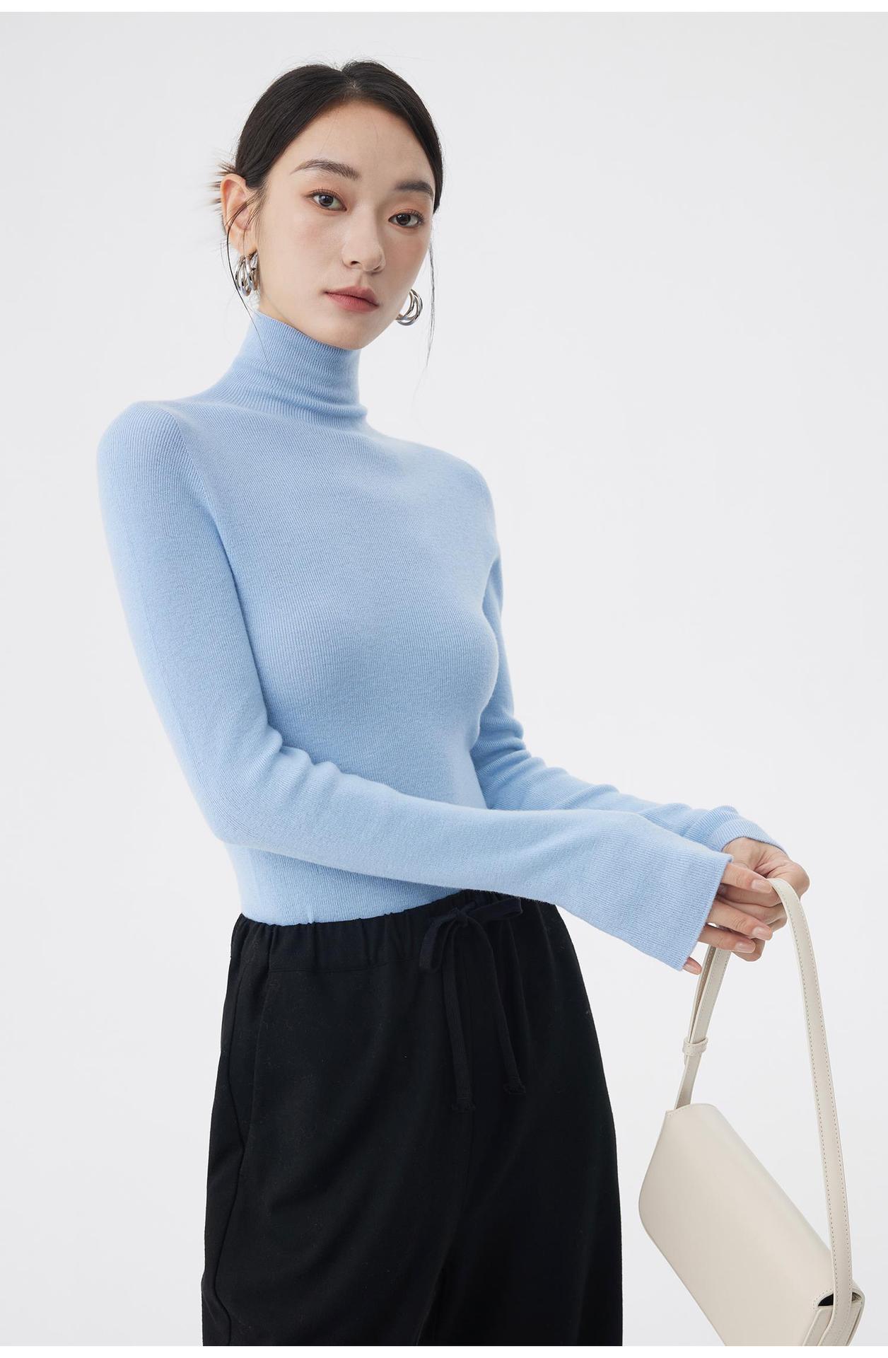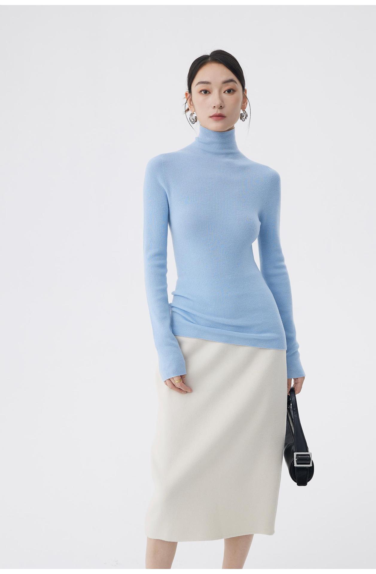 AA8906 백조 칼라 하의 셔츠 호주 메리노 고급 울 여성용 고탄력 원활한 원피스 터틀넥 스웨터스토어 가기