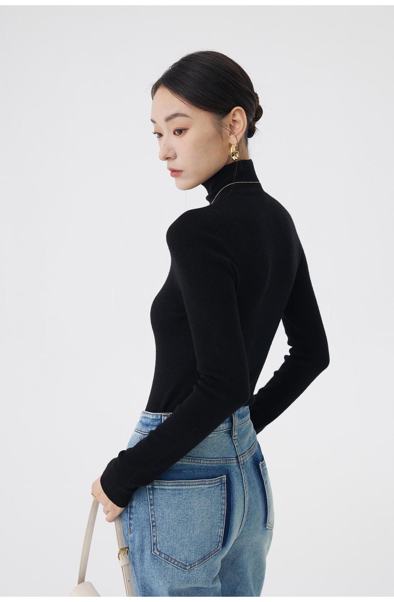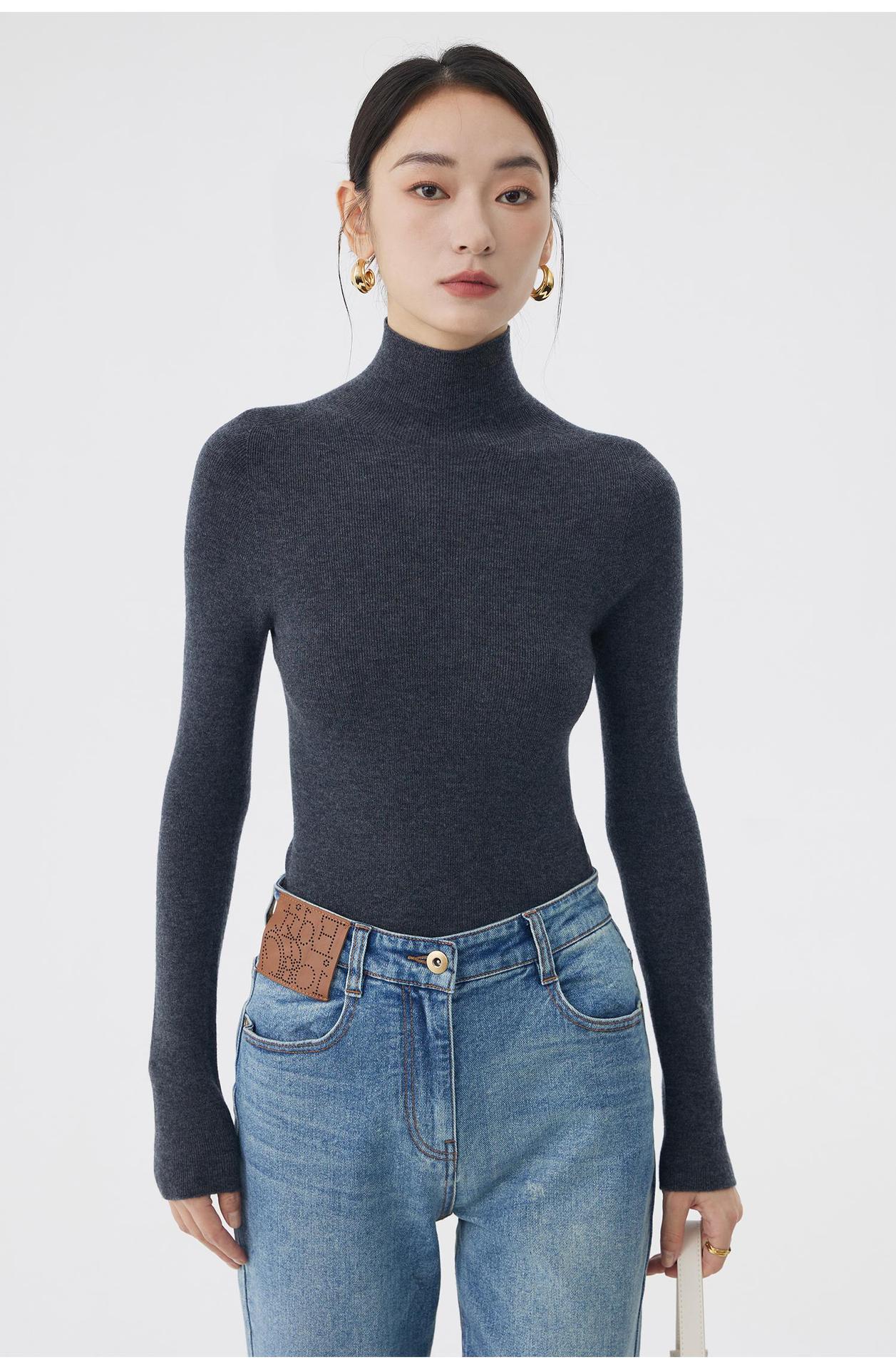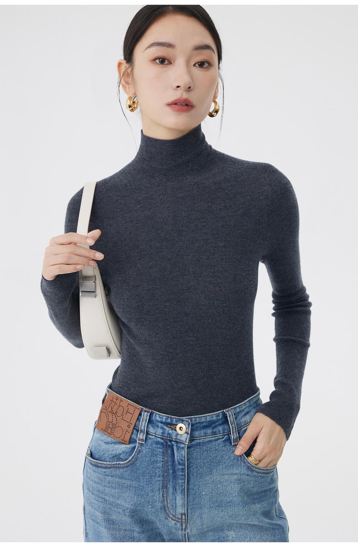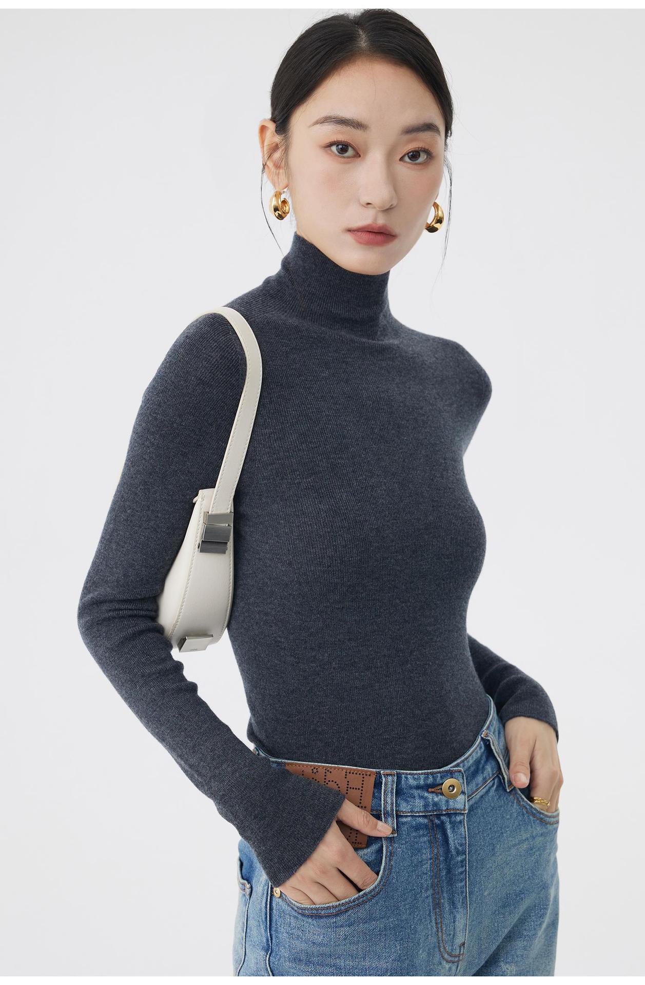 AA8906 백조 칼라 하의 셔츠 호주 메리노 고급 울 여성용 고탄력 원활한 원피스 터틀넥 스웨터스토어 가기