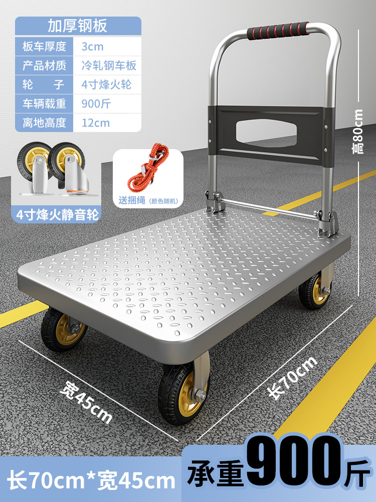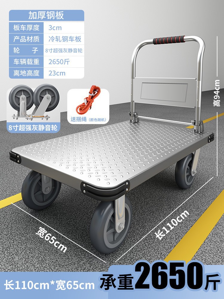 스틸 플레이트 트롤리 트롤리 트럭 가정용 평판 트럭 휴대용 트레일러 접이식 트롤리 핸드 트롤리
