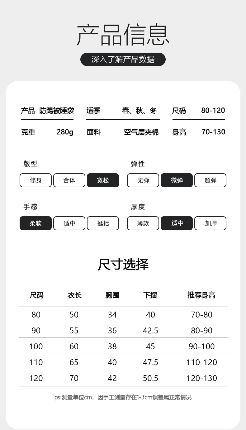 어린이 침낭 가을과 겨울 두꺼운 퀼트 아기 조끼 큰 어린이를위한 킥 방지 민소매 민소매 잠옷 잠옷스토어 가기